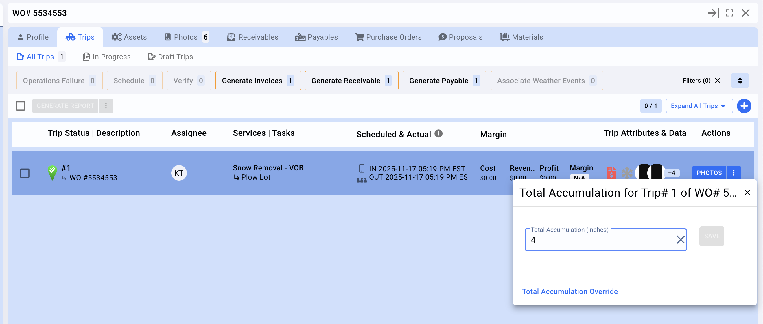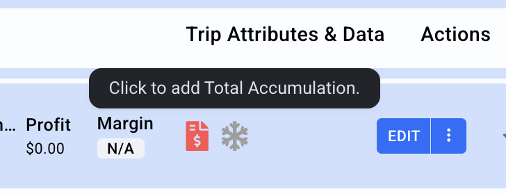Trips that use manual accumulation are easy to spot: they’ll show a gray snowflake icon with the tooltip: "Click to Add Total Accumulation".