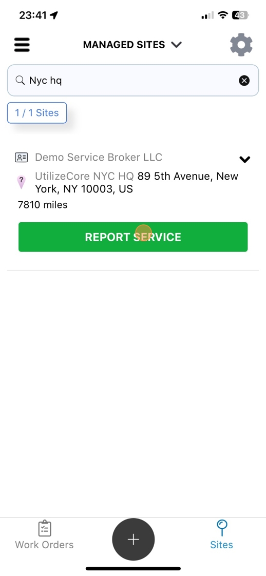 1. As soon as the Vendor logs into the Mobile app, the user should click on Sites in the bottom right corner