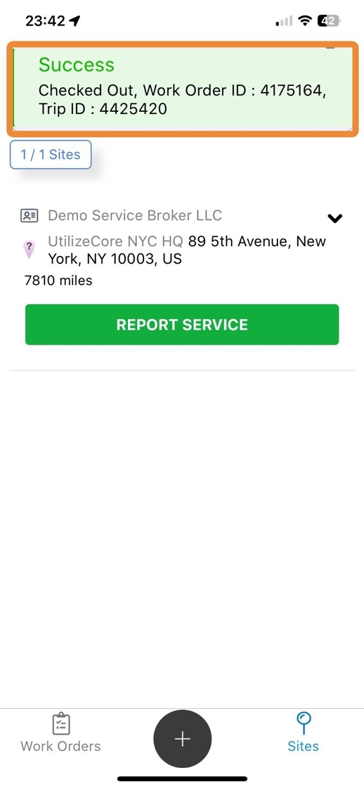 7. The user will see a modal pop-up with a success message and the Work Order ID