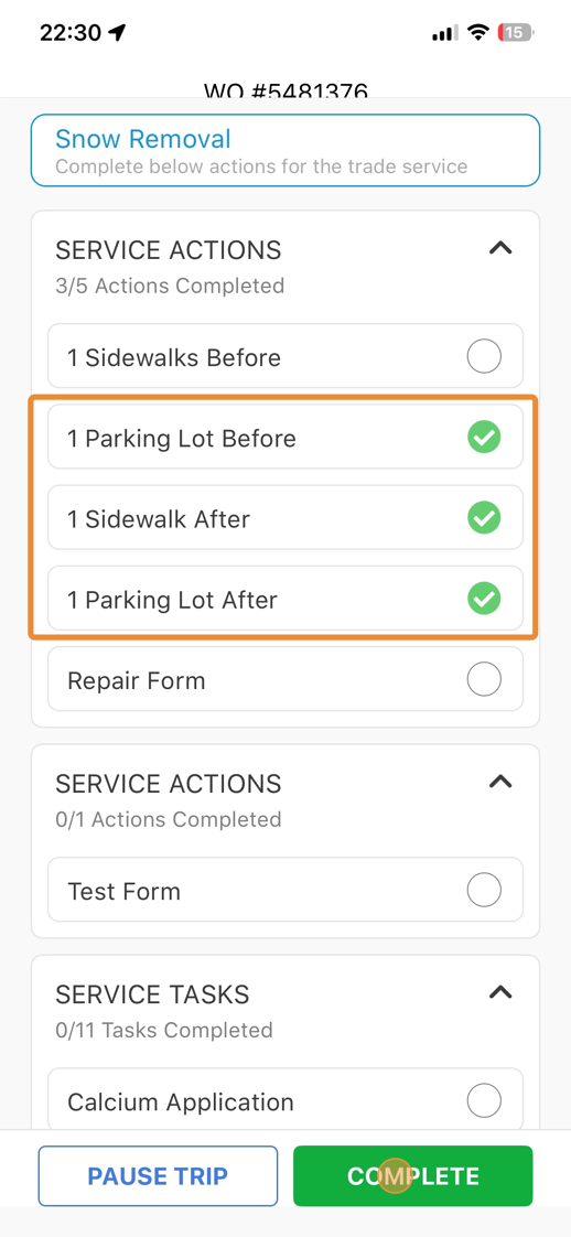 Click on the Green button "Complete" and this will take you to the Service Overview page