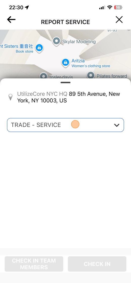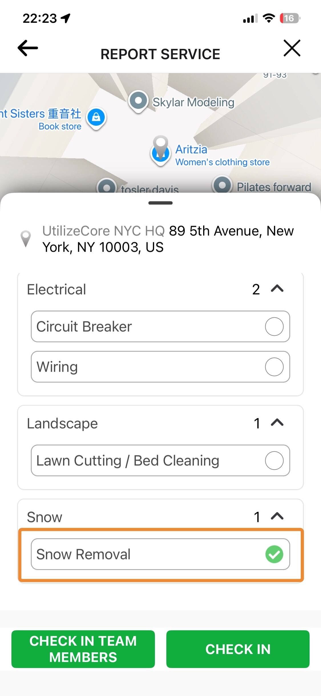 4. Select a Service and it will show a green check circle. Click on the green button "Check In"