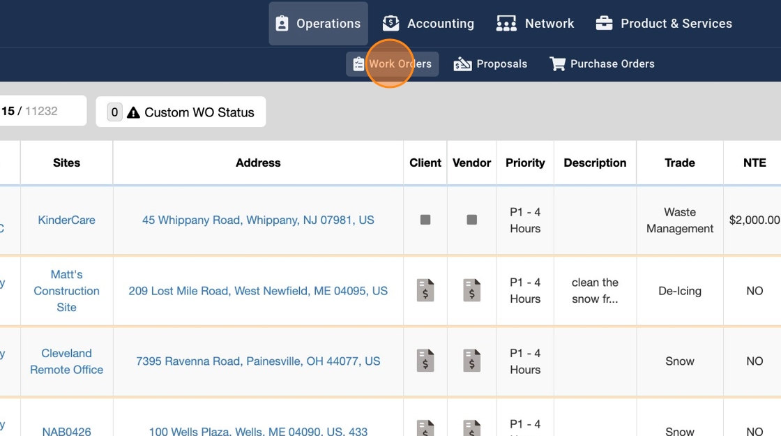 2. Click "Work Orders"