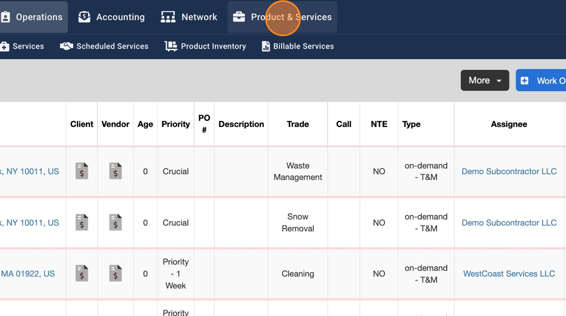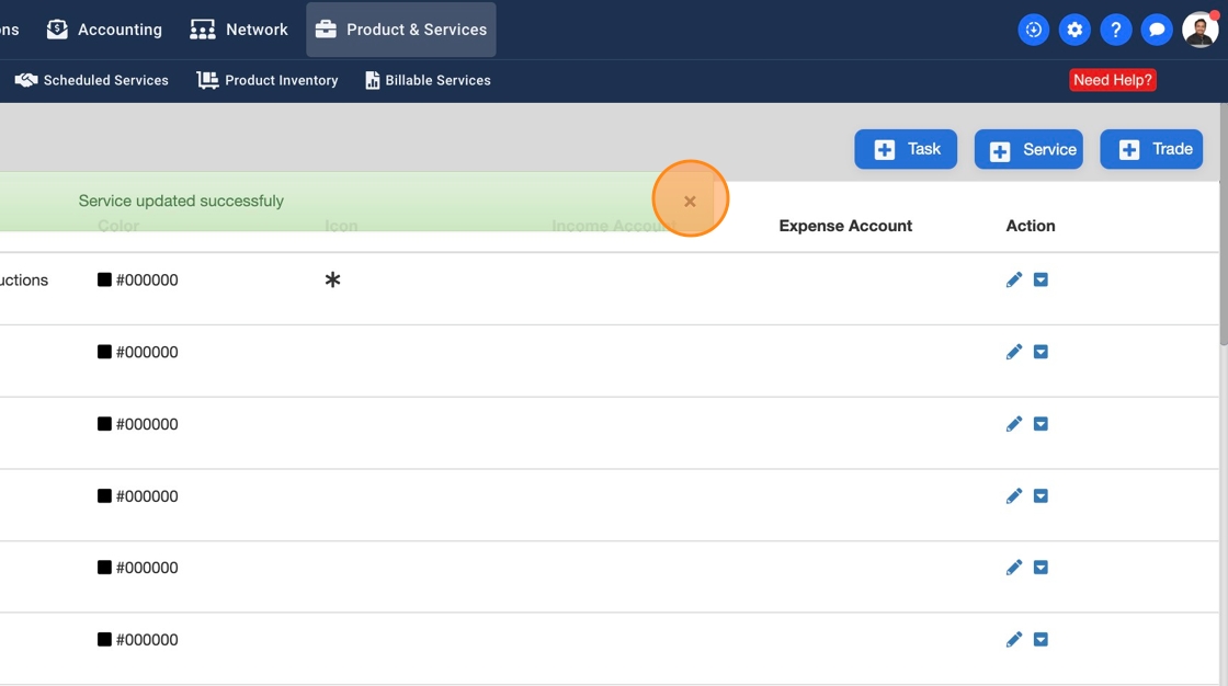 3. You should see a default list of all Trades. Click on the Trade row to view Services under the Trade