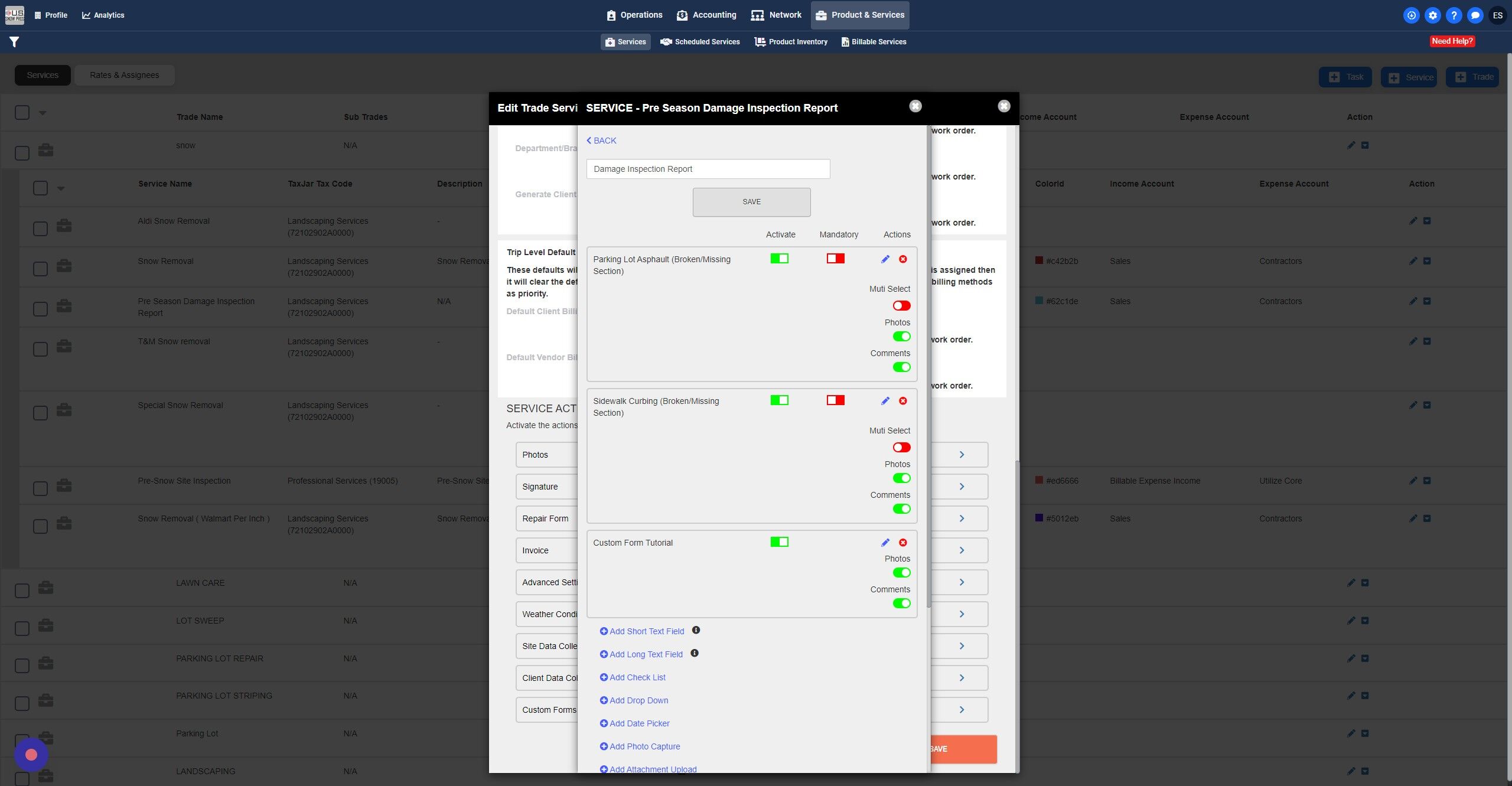 1. Navigate to products & services --> Services module