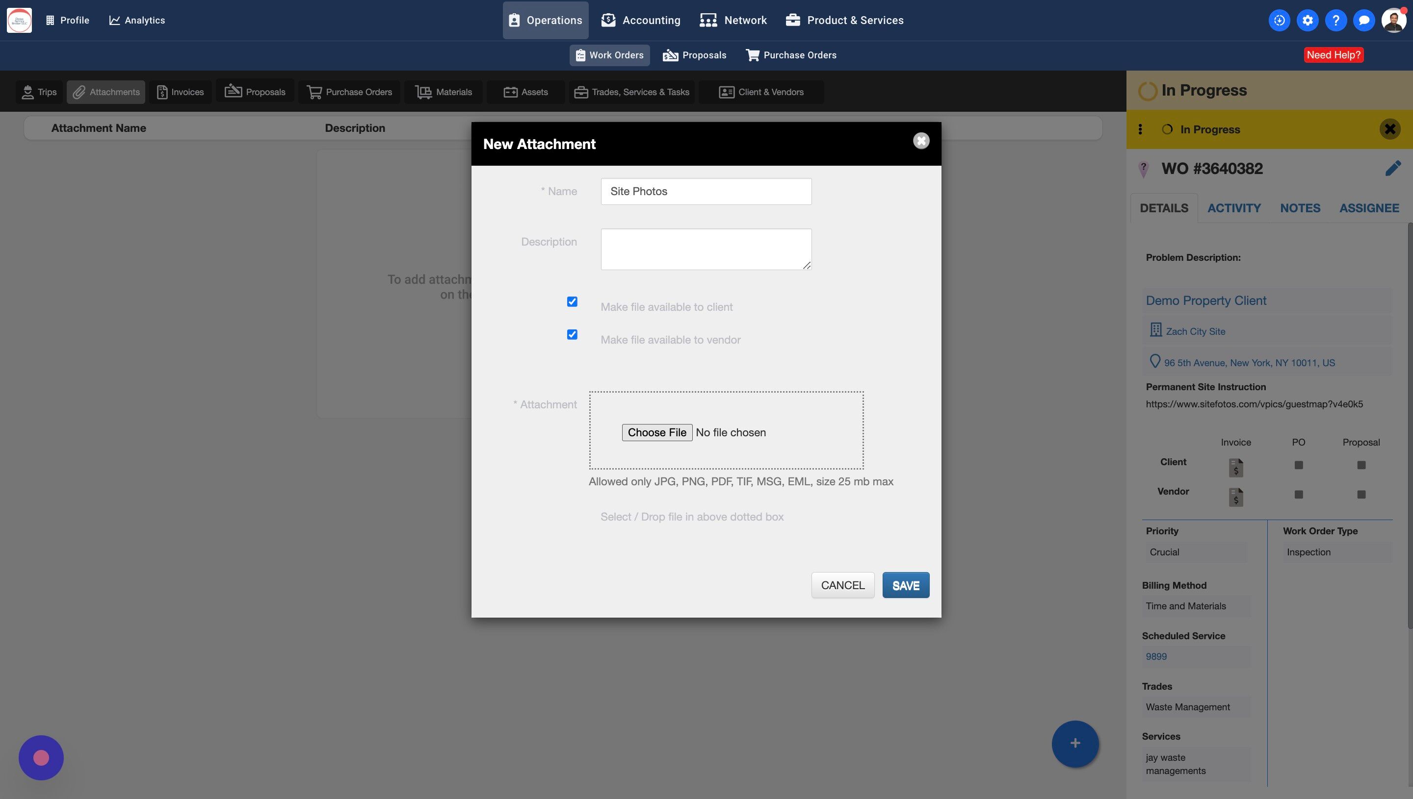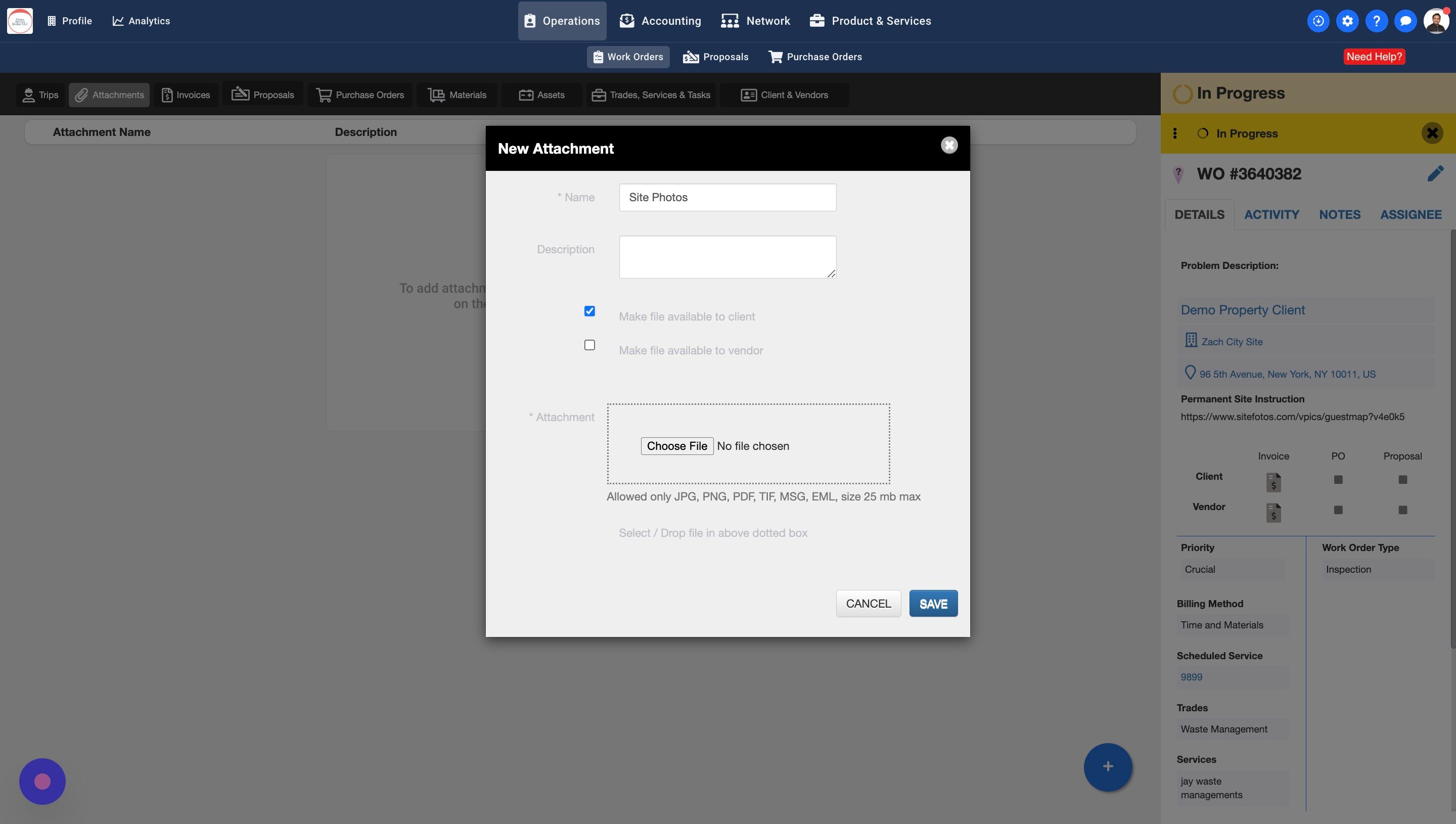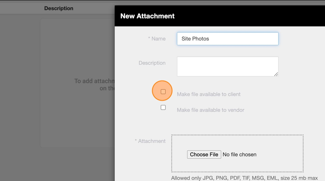 7. By selecting this checkbox you are making this attachment available to your Clients. Your Clients will be able to see this attachment on the Work Order.