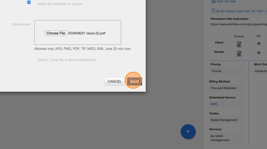 8. By selecting this checkbox you are making this attachment available to your Vendors. Your Vendors will be able to see this attachment on the Work Order.