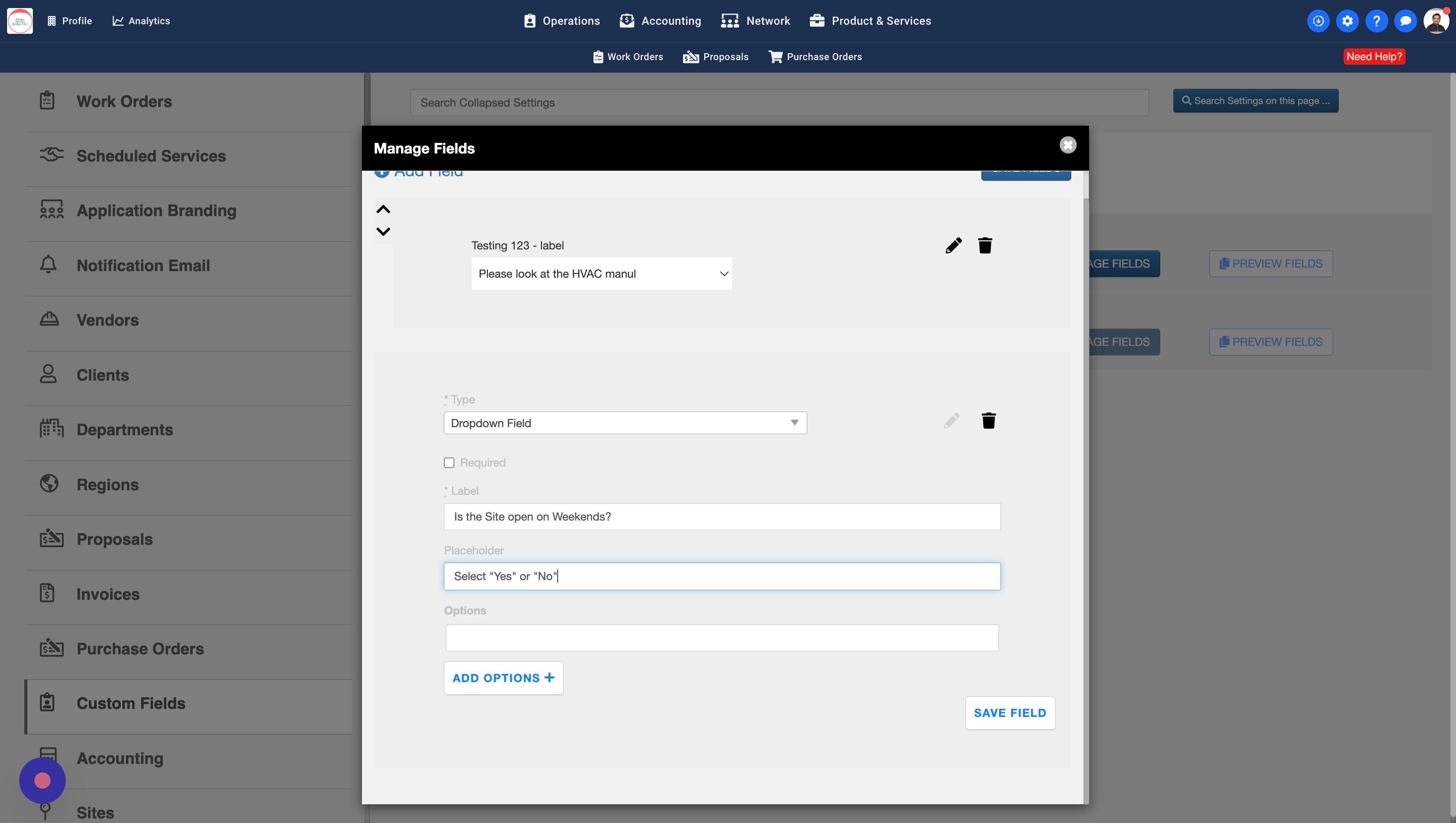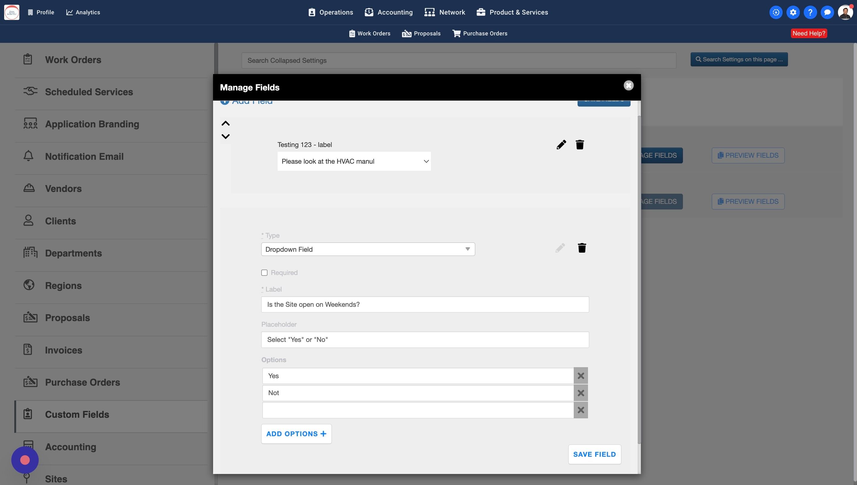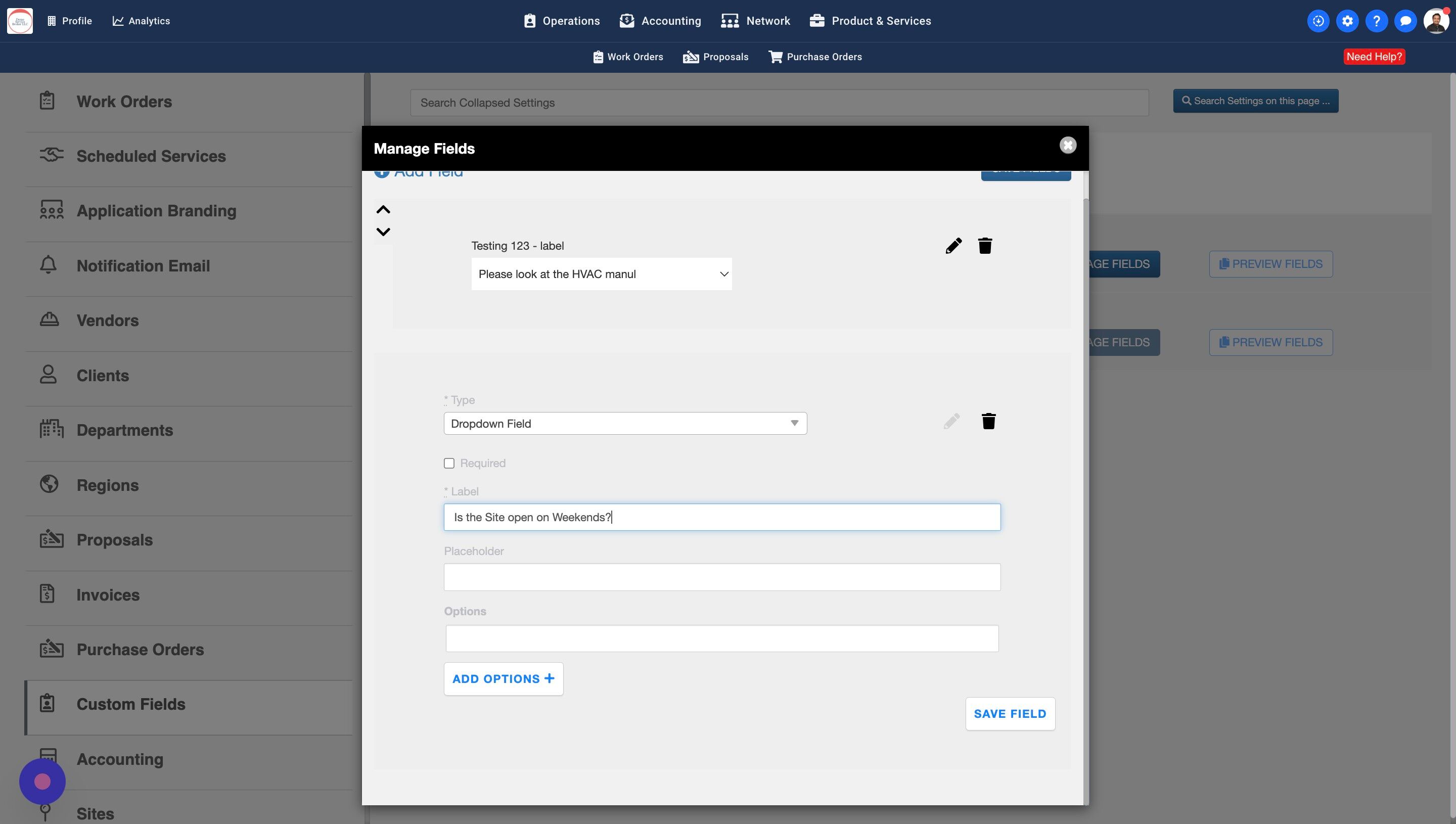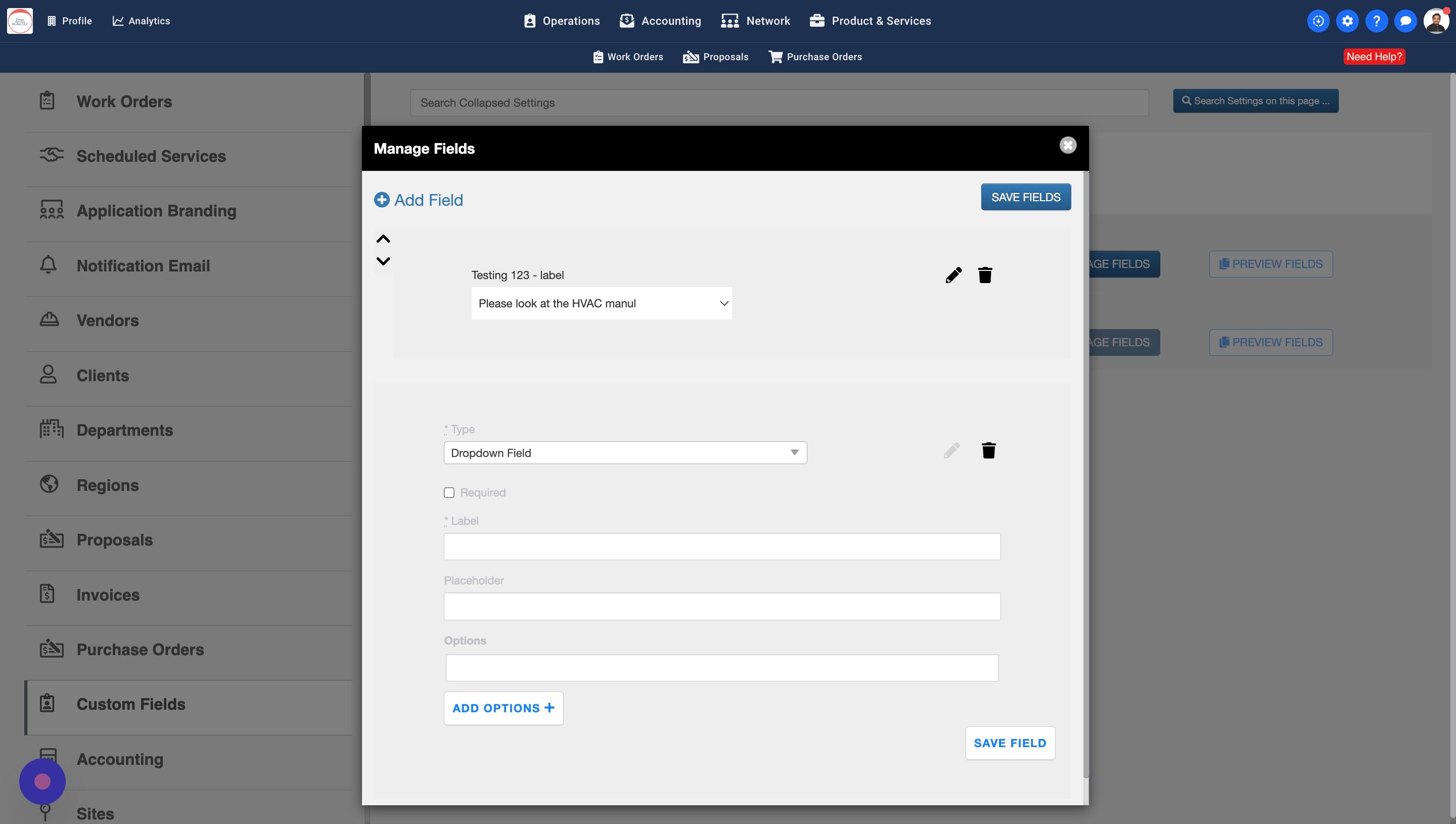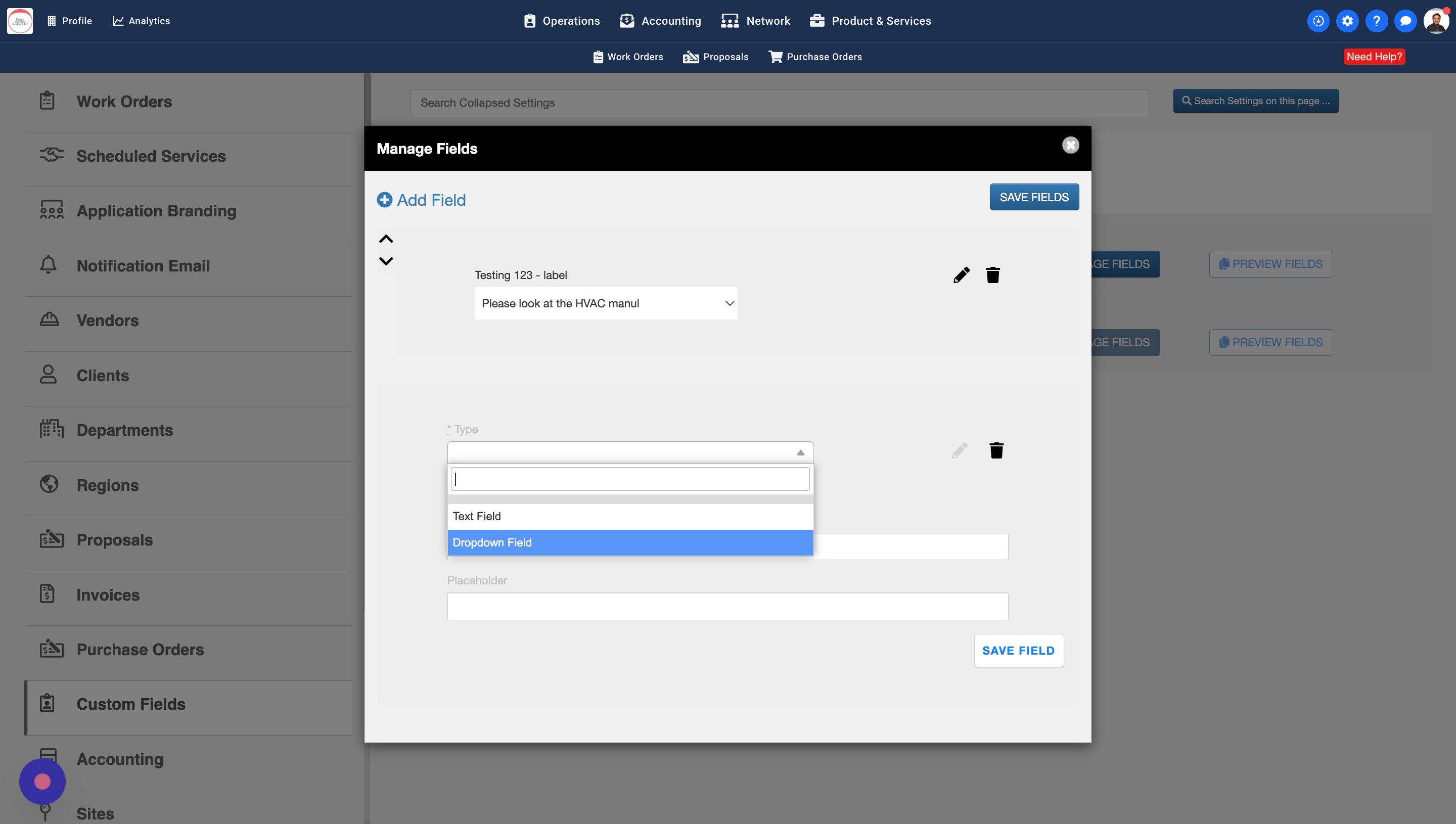 You can easily create and manage custom fields, including text fields and dropdowns, with options for users to choose from.