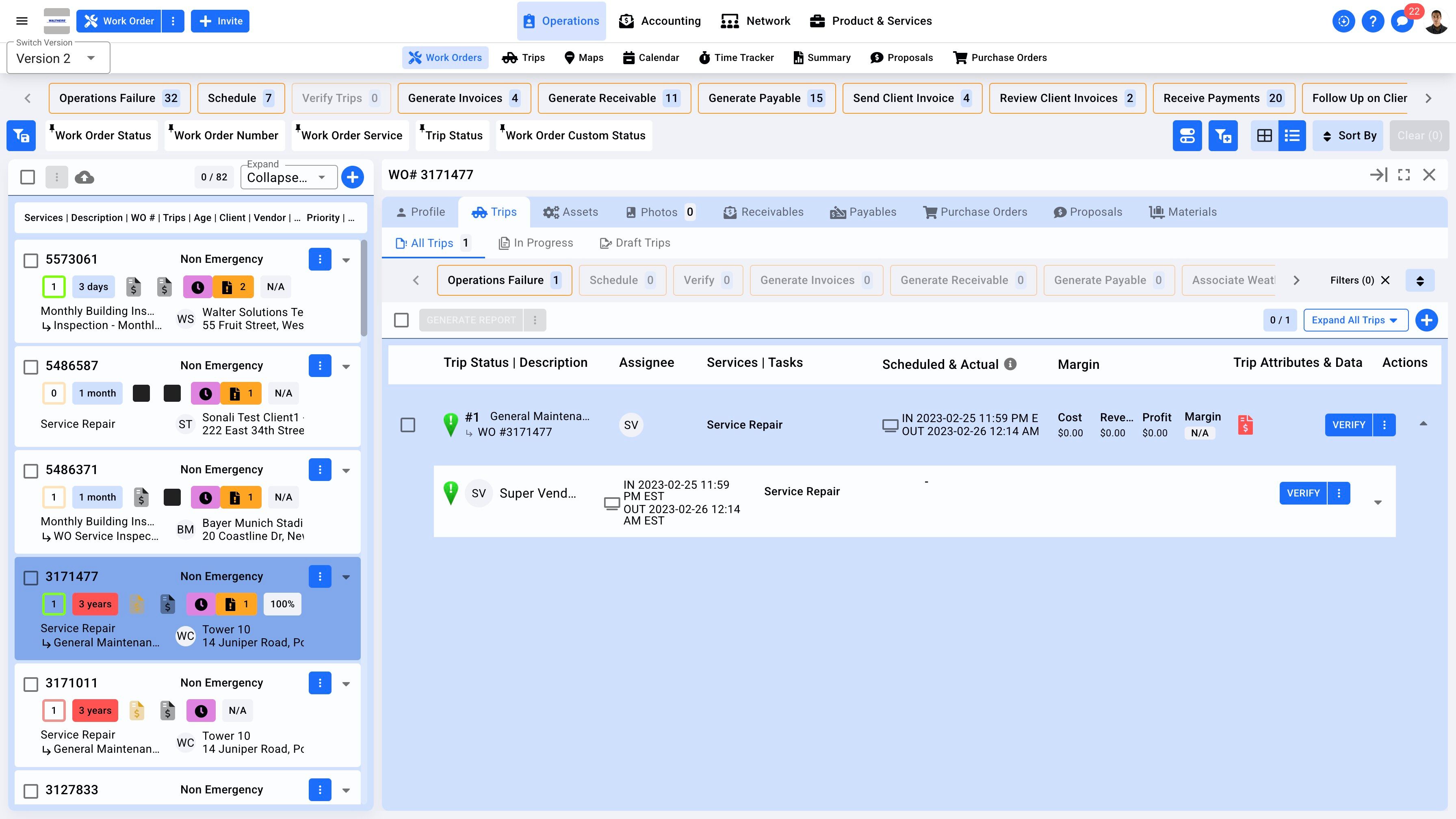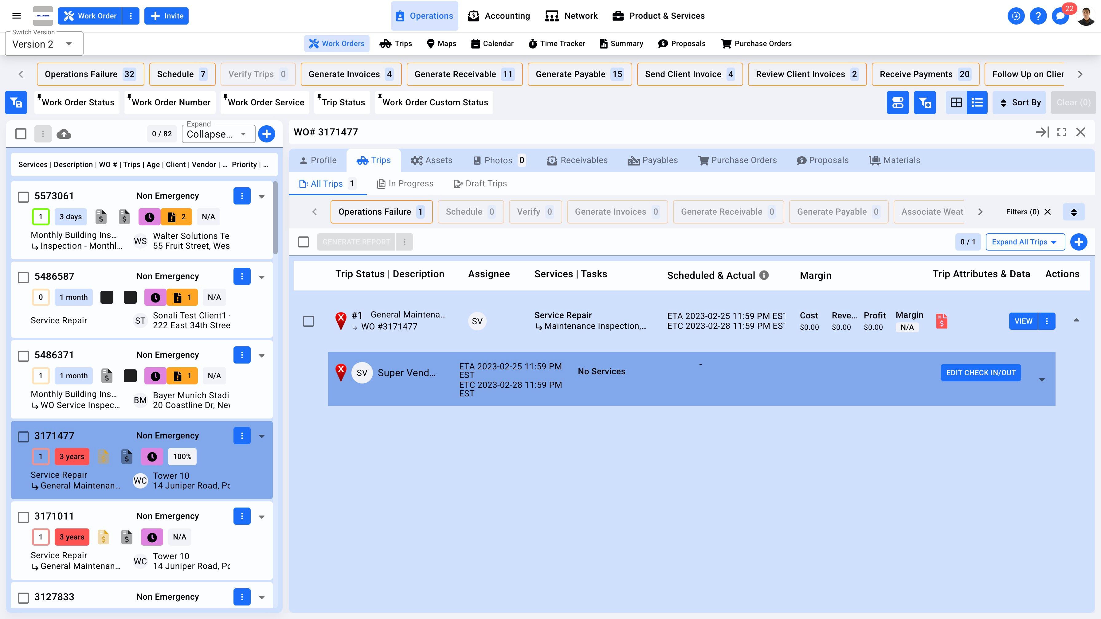 4. On the Work Order Trip tab, click on the drop-down icon.