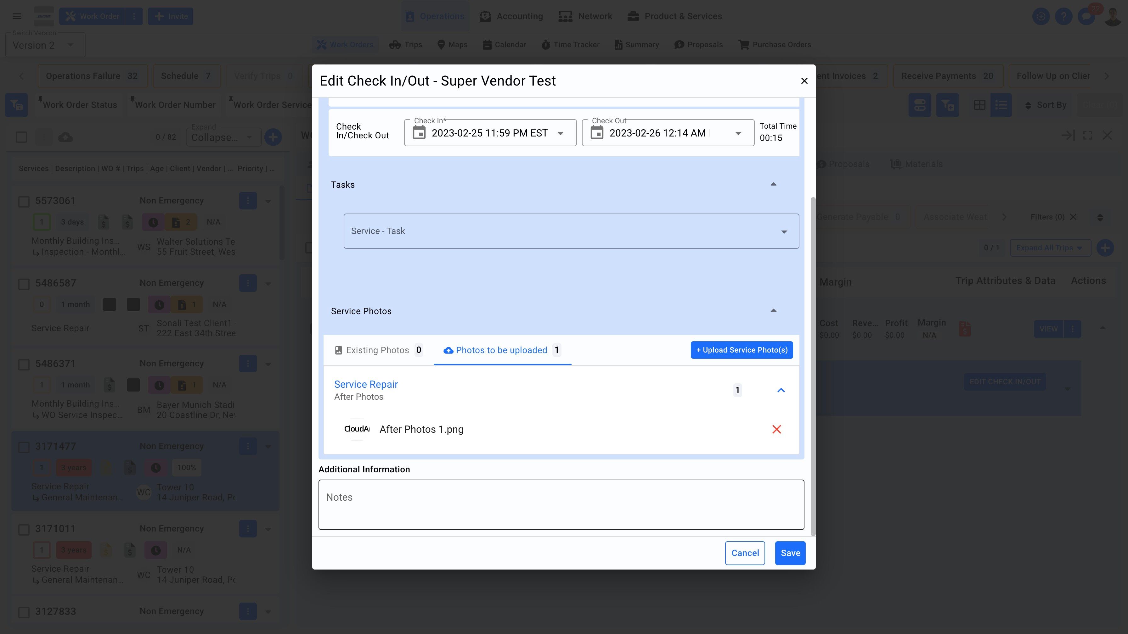 3. Click on the Work Order which the photos will be uploaded.