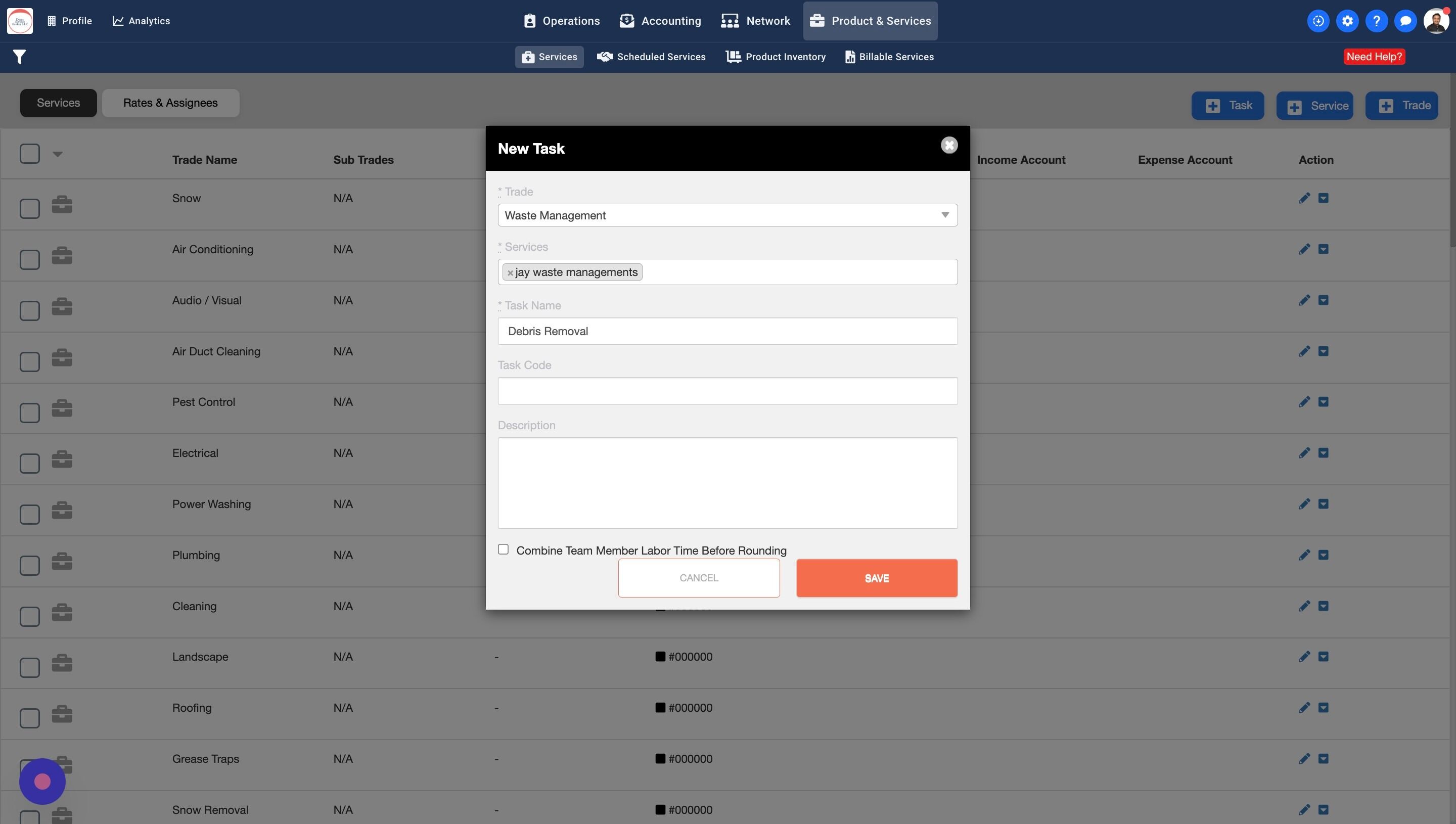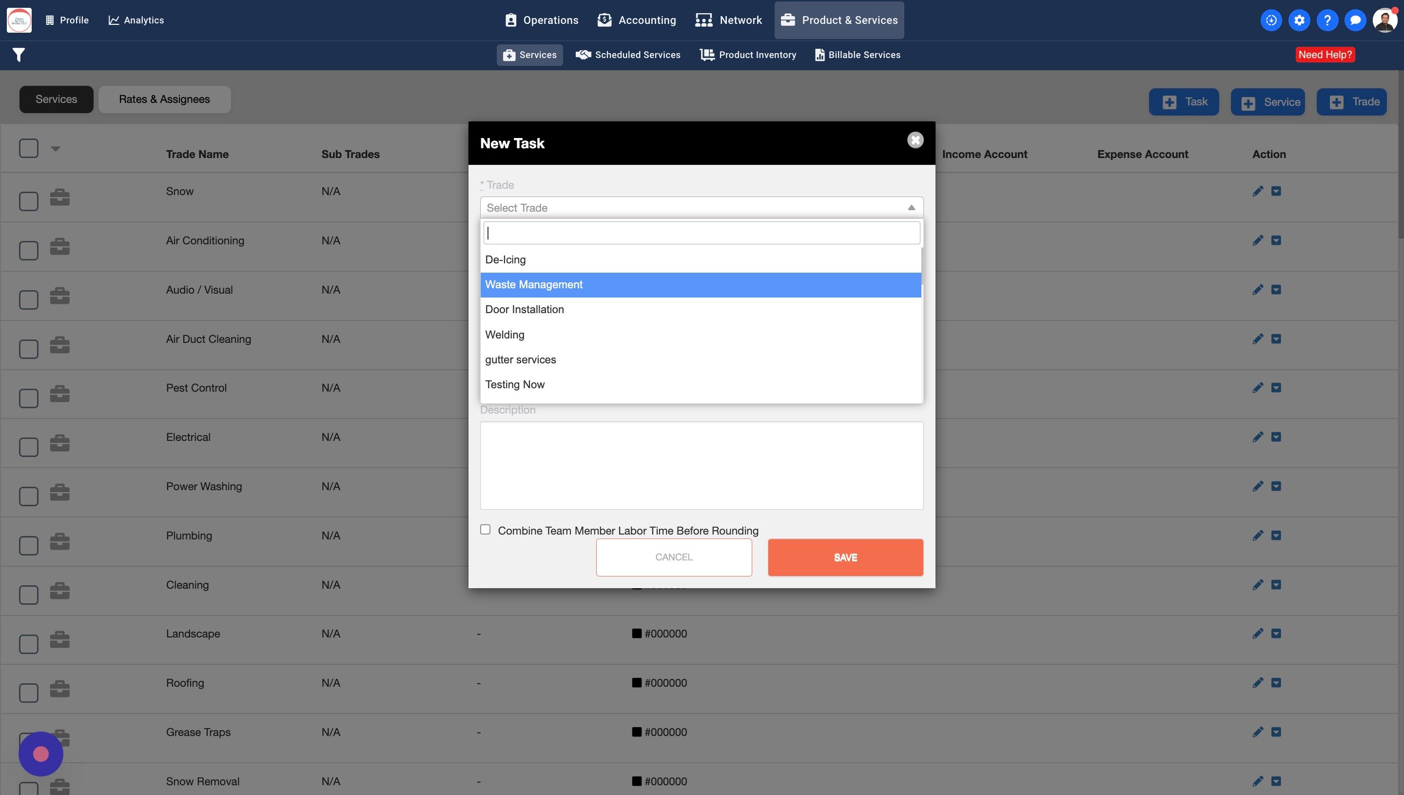 5. Select a Service. If you've added multiple Services under the Trade you'll see a list of all the Services in this dropdown