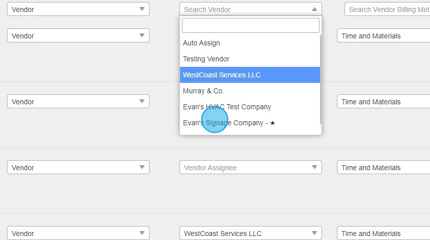 24. Next choose your vendor billing method & the Vendor/Team Member desired