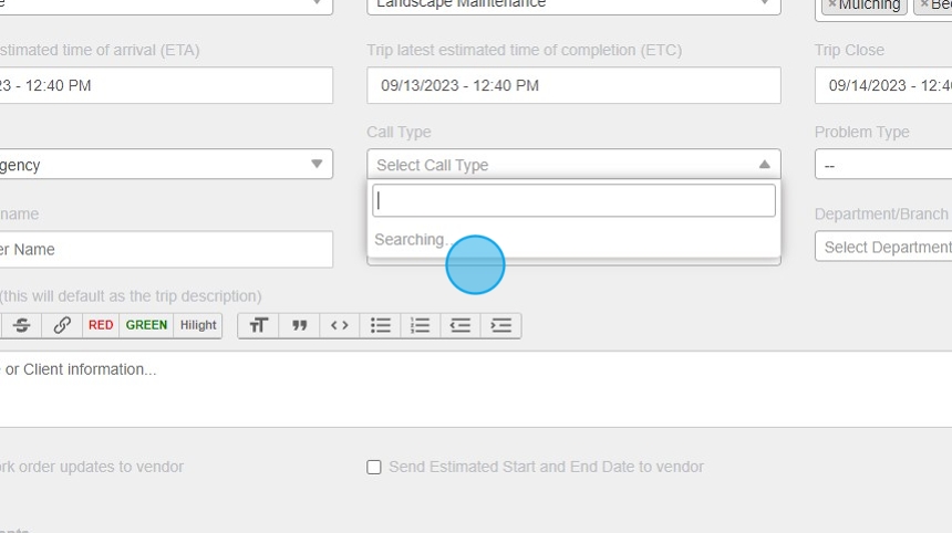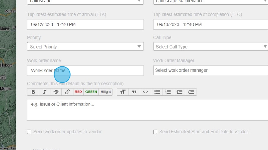 19. Click "Send work order updates to vendor" - This must be checked to send out email correspondence