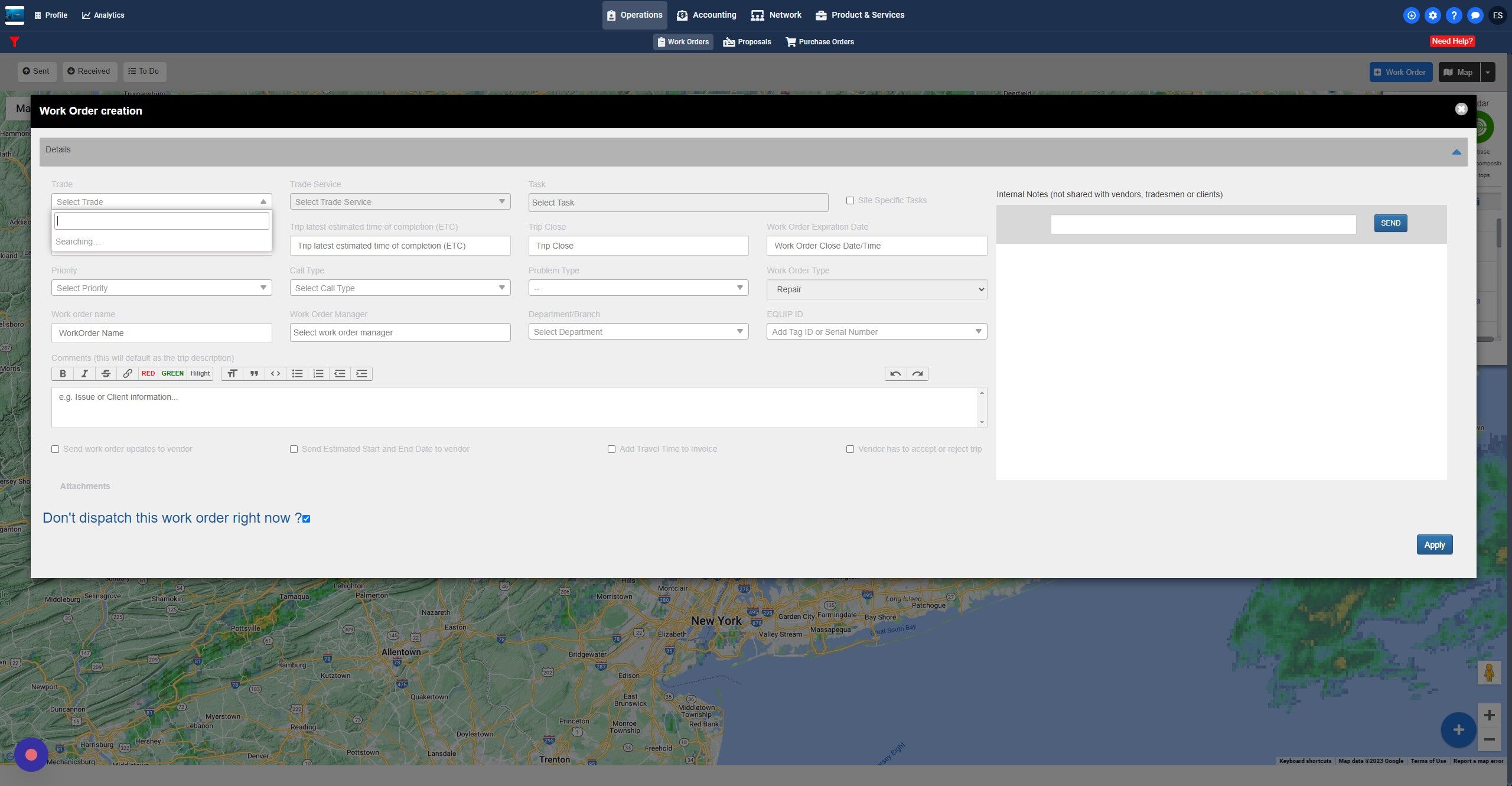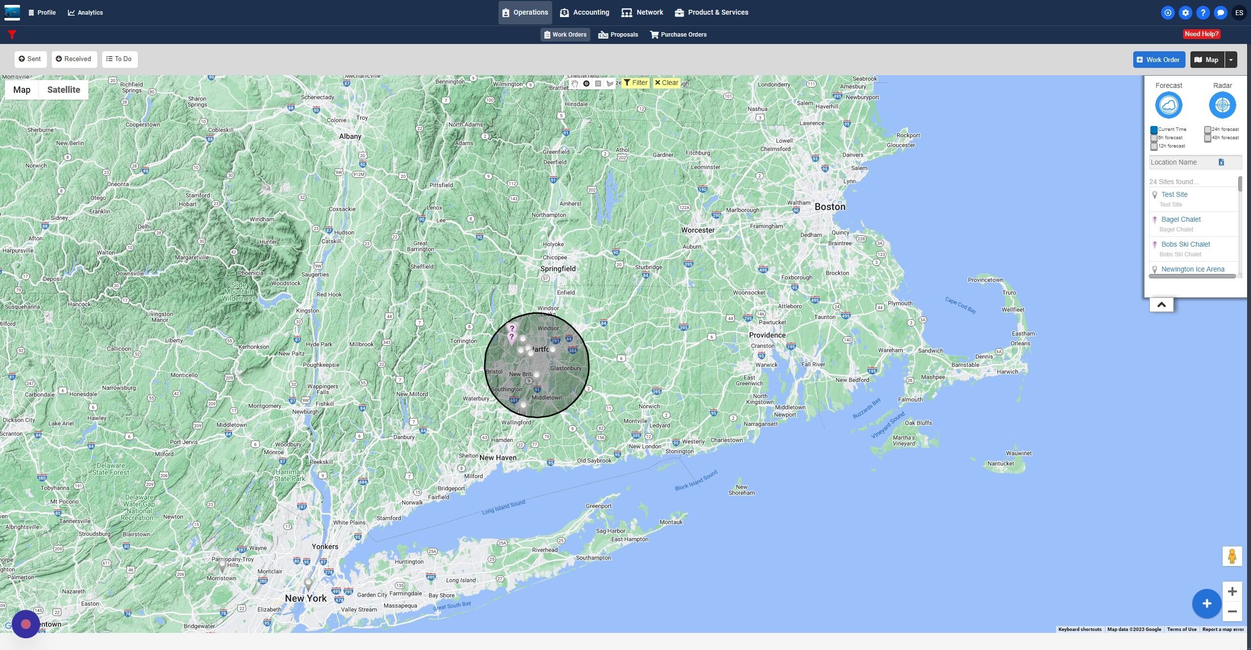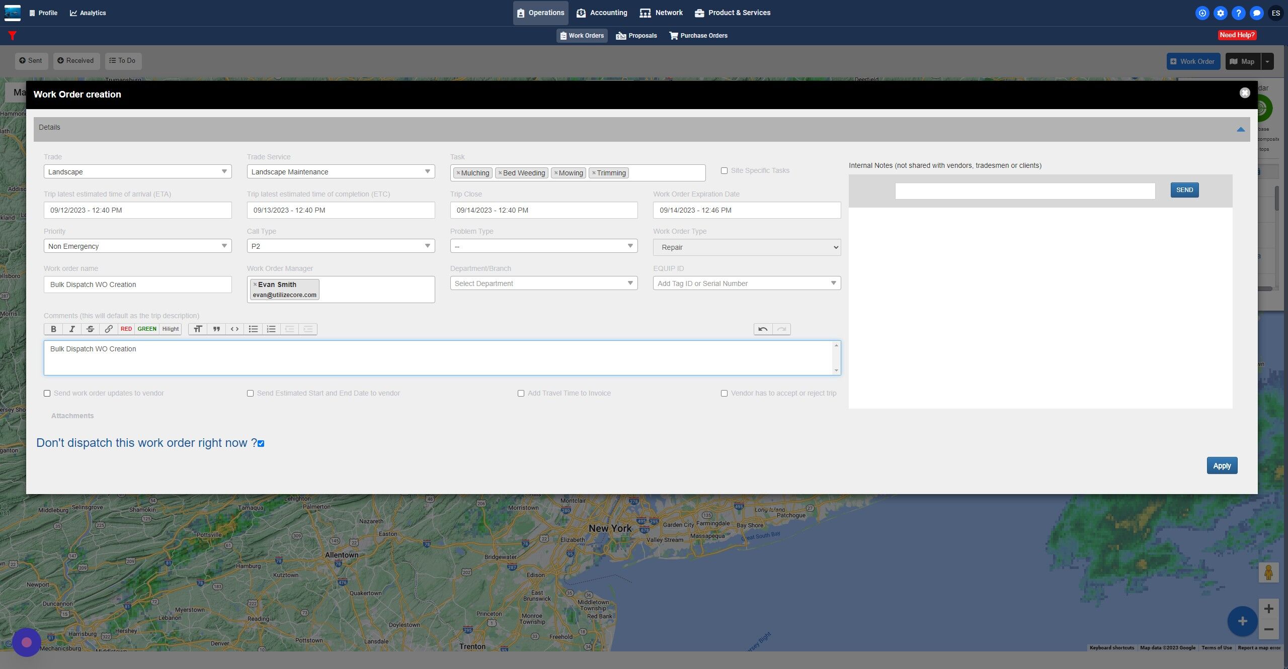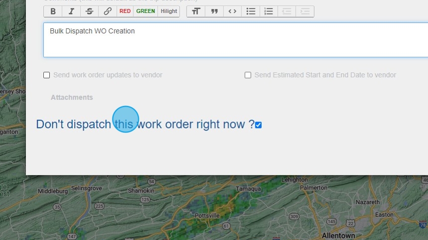 5. If you choose the "Forecast" or "Radar" buttons you can choose to bulk dispatch based on weather if you desire