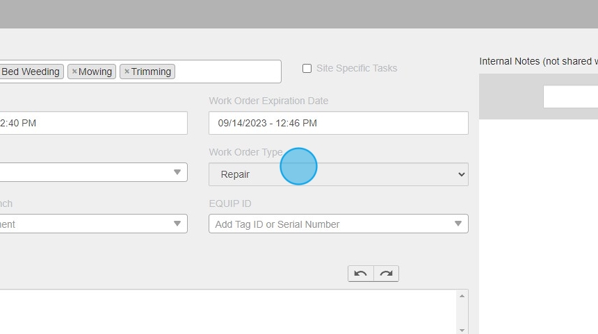 14. Click "Work Order Expiration Date"