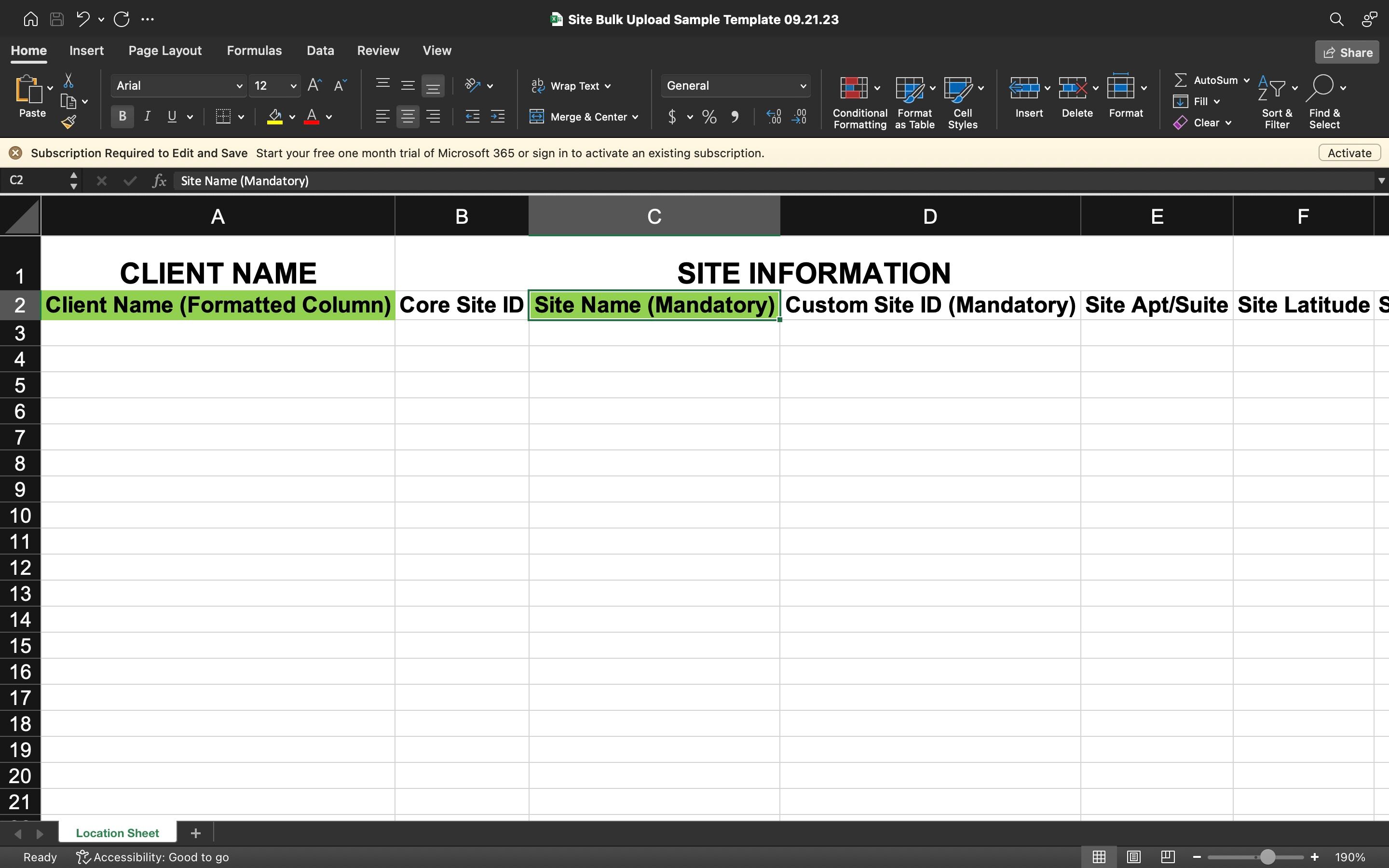 Note: The Client name should match with the Client name you entered in UtilizeCore. That includes every "," & "." too. Cells that have a "Mandatory" word are important and cannot be left empty in order to upload the file successfully. The Client Name should be the same as Public Profile Name