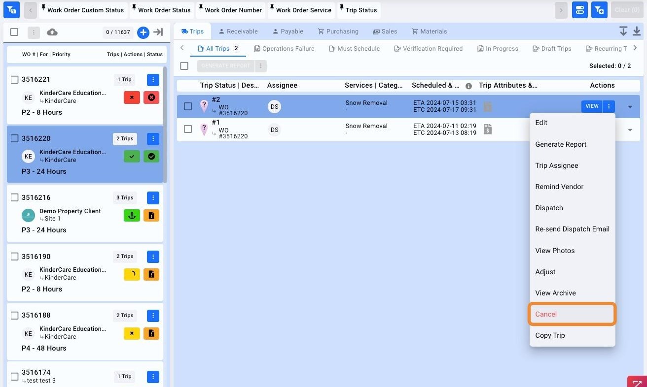 This guide provides step-by-step instructions on how to cancel a trip from a work order. It includes specific actions to take, such as deleting services and cancelling the trip, and highlights the importance of following certain steps. By following this guide, users will be able to successfully cancel a trip from a work order.