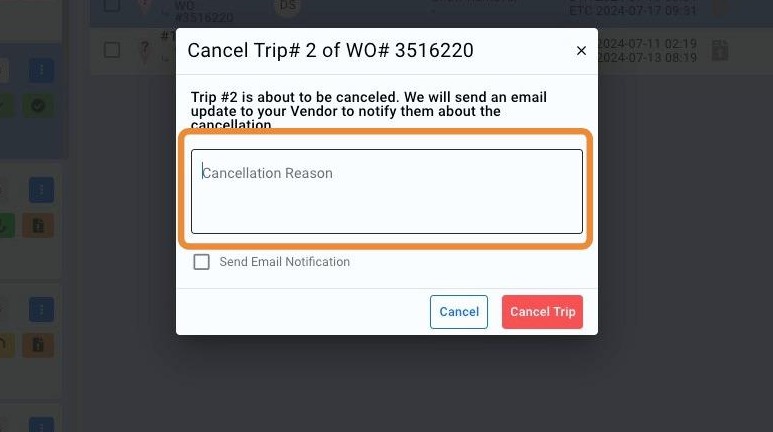 6. Click the "Cancellation Reason" field to fill out a cancellation reason