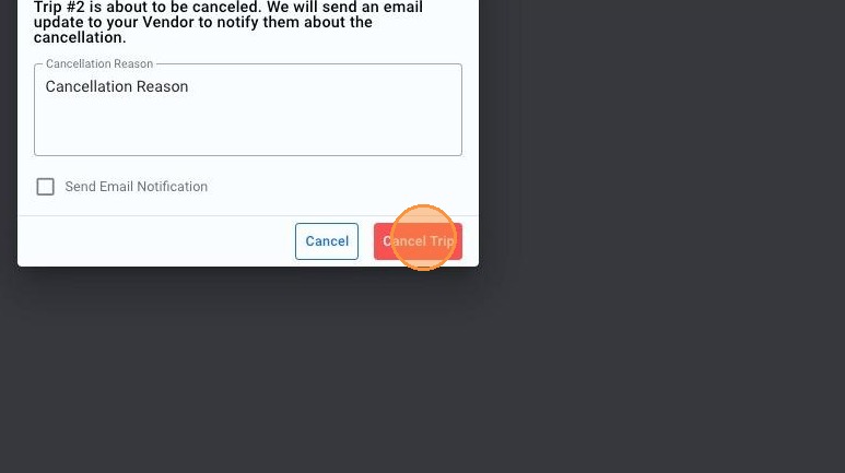 9. You will see a banner stating that the Trip has been Canceled successfully