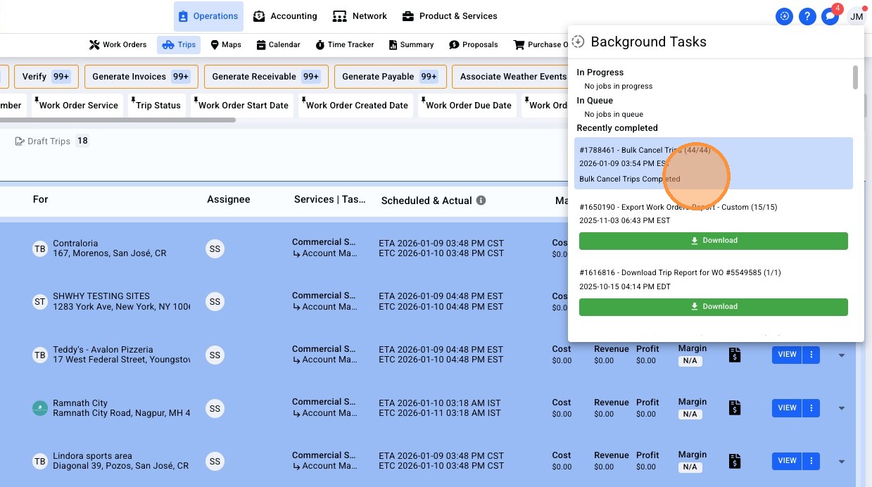6. Like all bulk actions, your bulk Cancellation can be monitored from within your 'Background Tasks'.