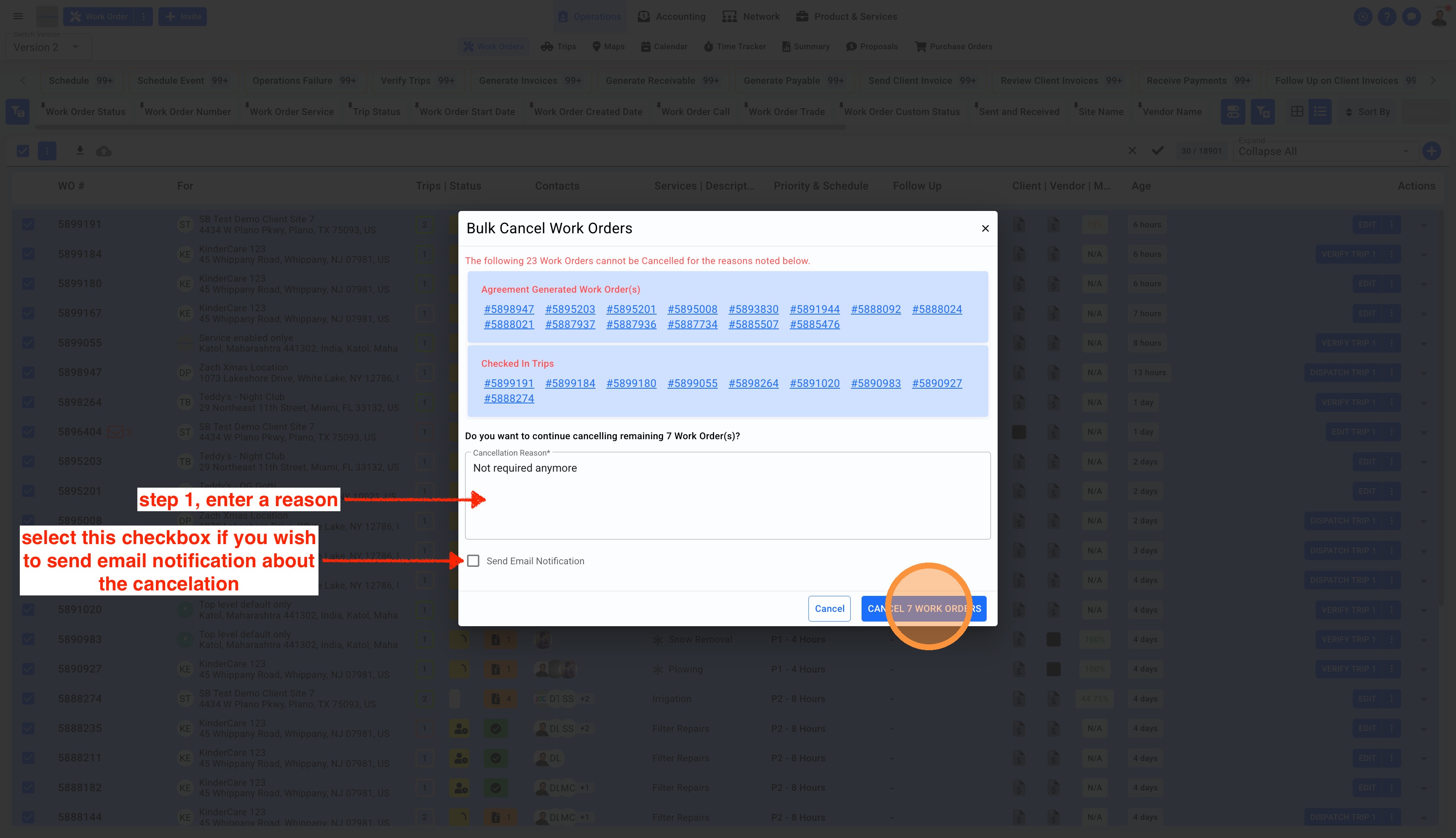 How To Cancel Work Orders In Bulk From Version 2