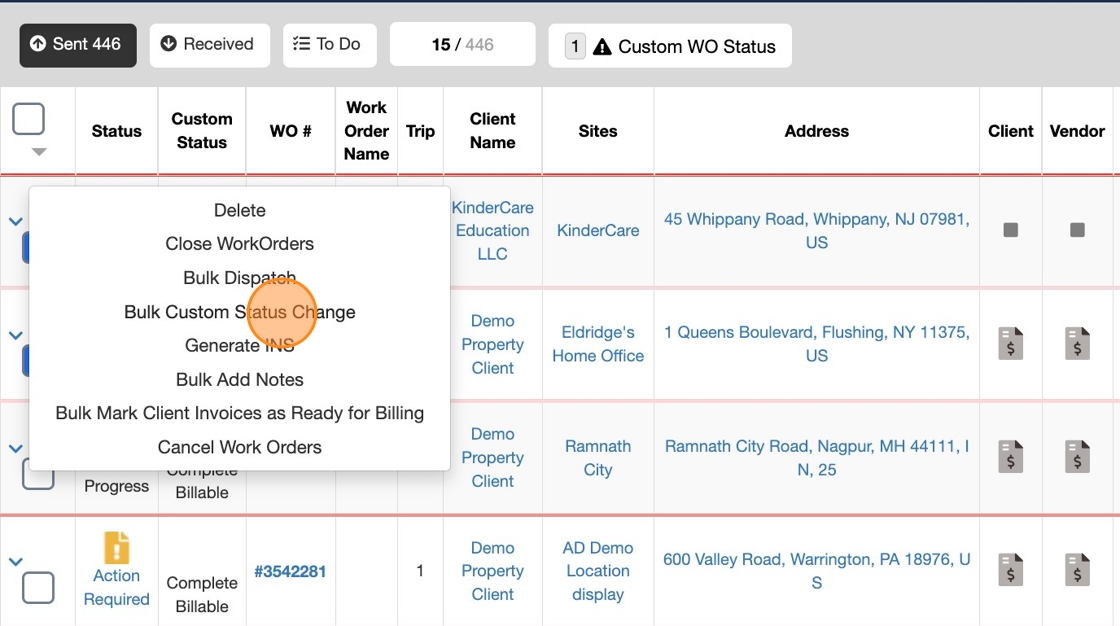 11. Click "Bulk Custom Status Change"