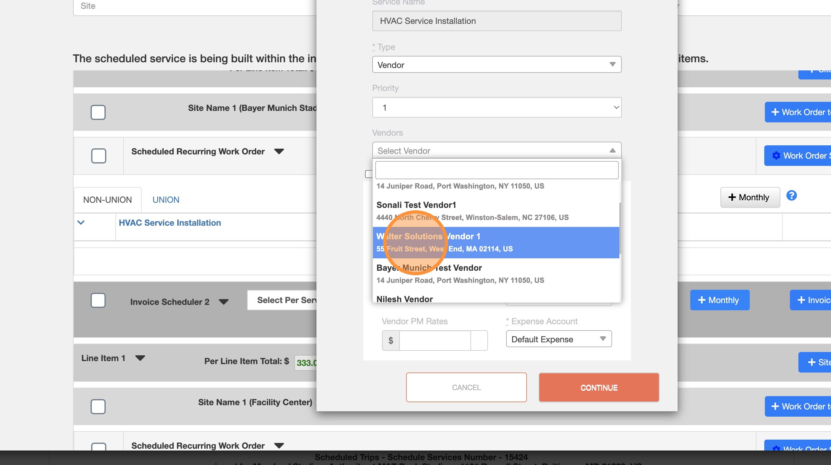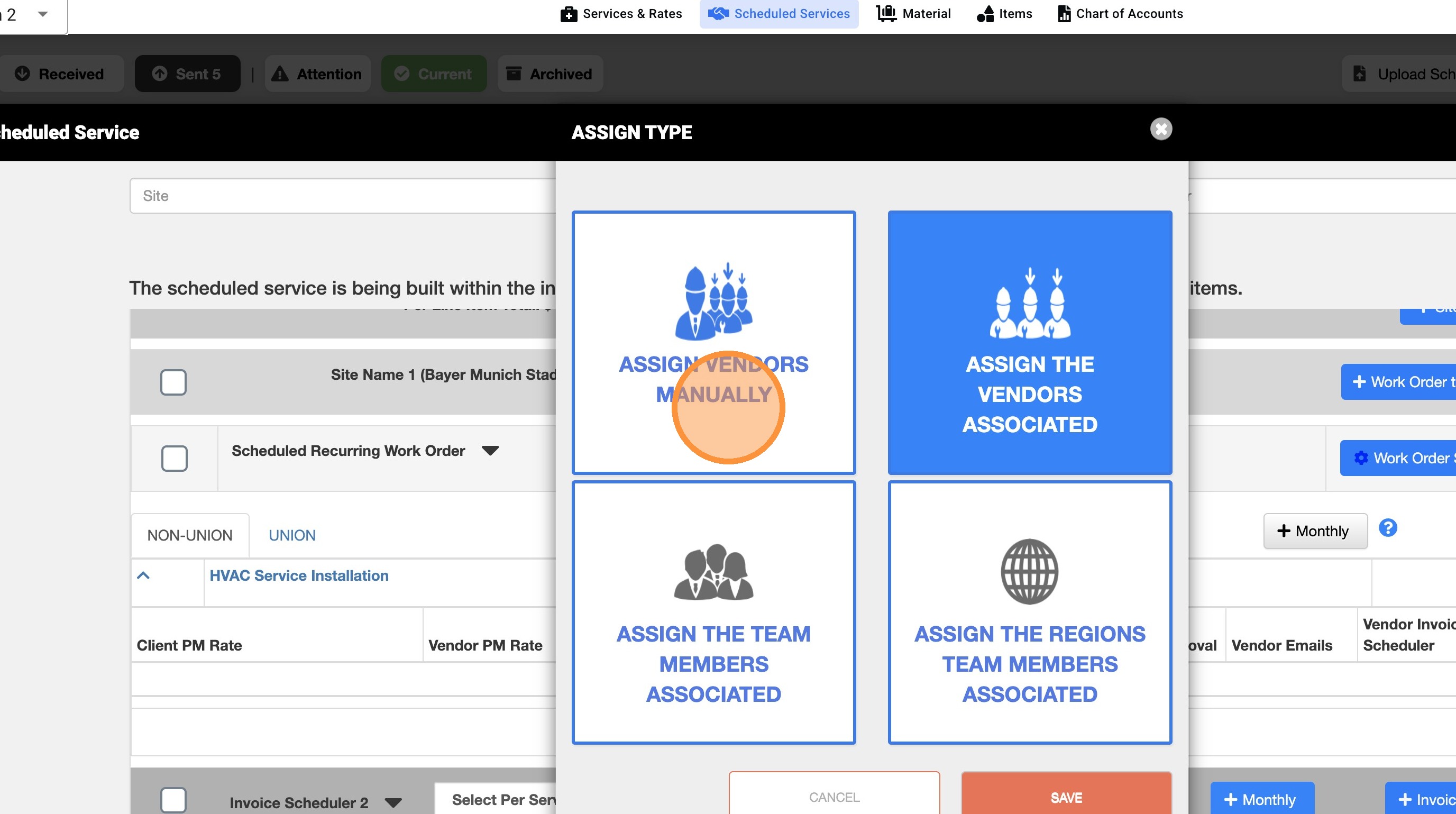 The Following steps will show you how to reassign a vendor for an existing Scheduled Service Agreement already been generated.