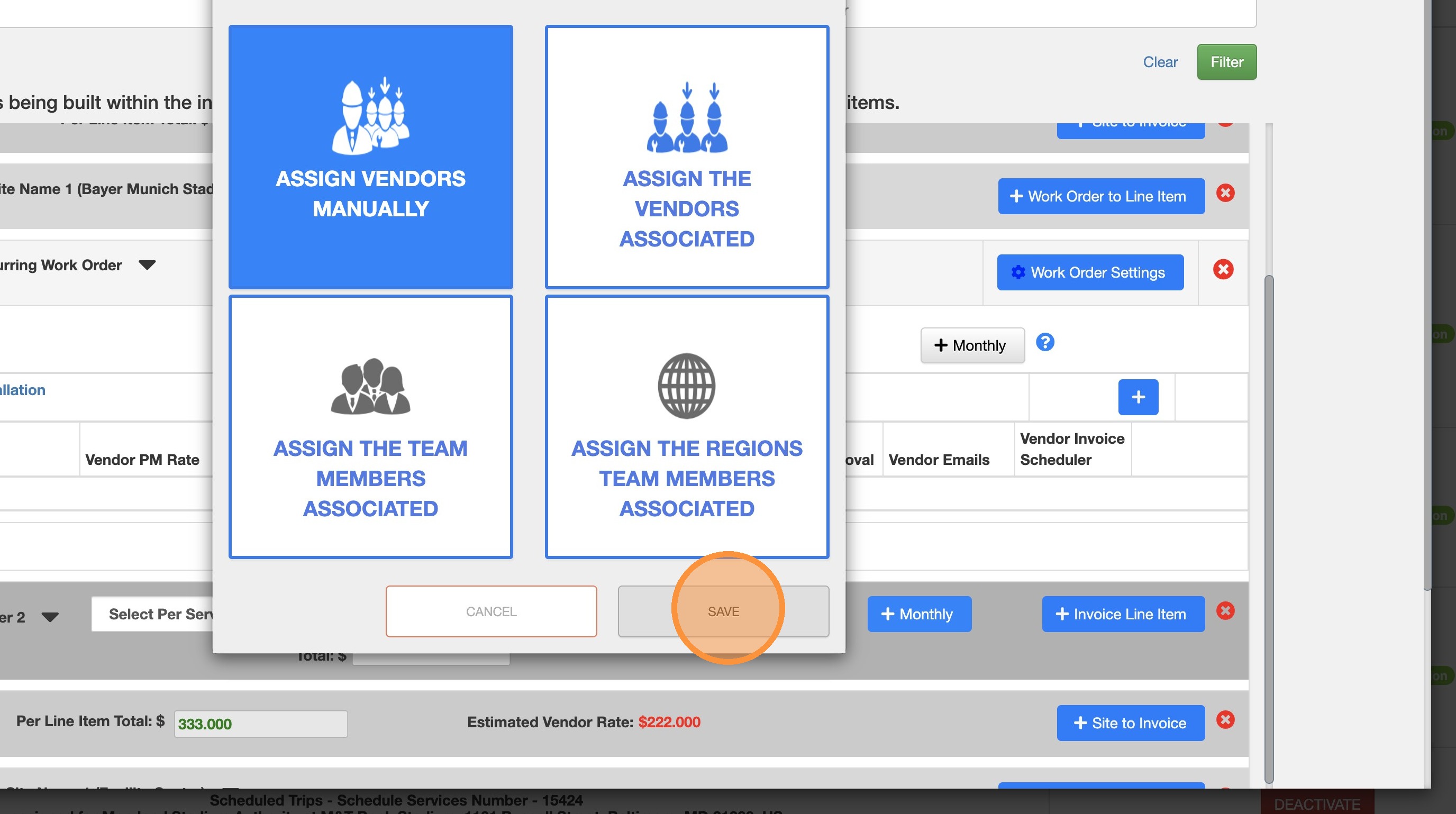 8. Click "ASSIGN VENDORS MANUALLY" in case the Vendor must be added manually.