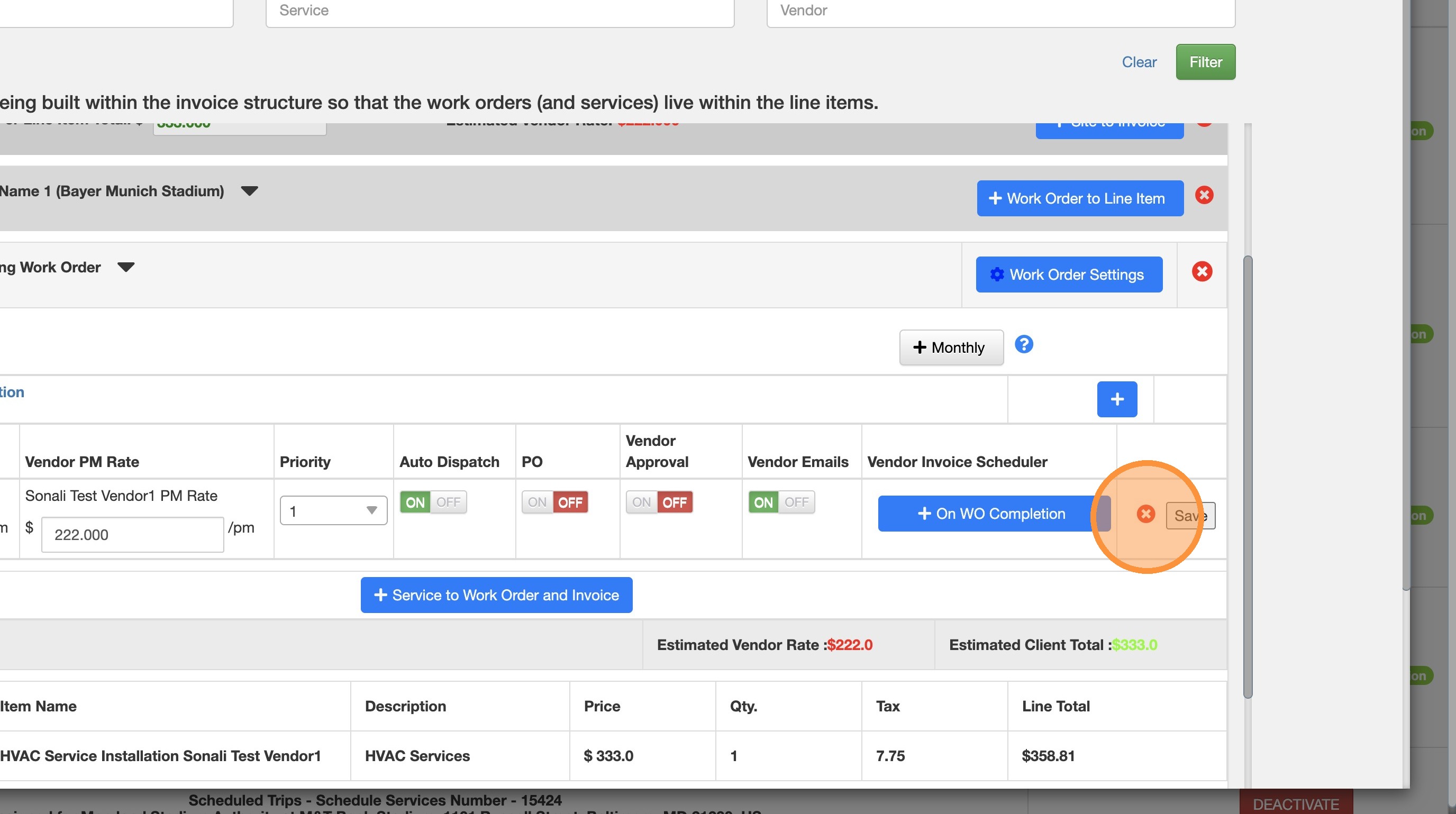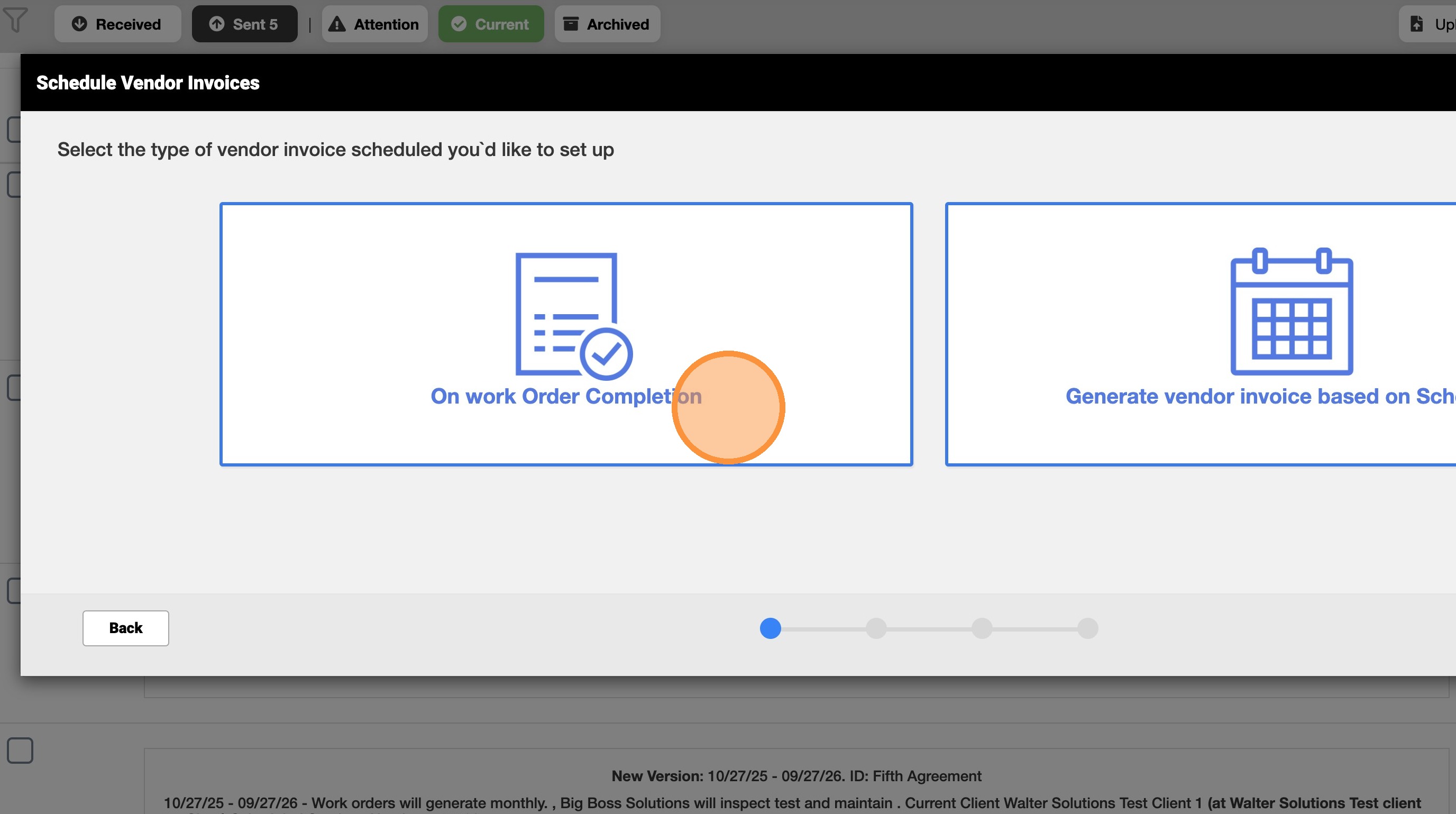 18. On this example it is selected "On Work Order Completion" the vendor billing configuration.