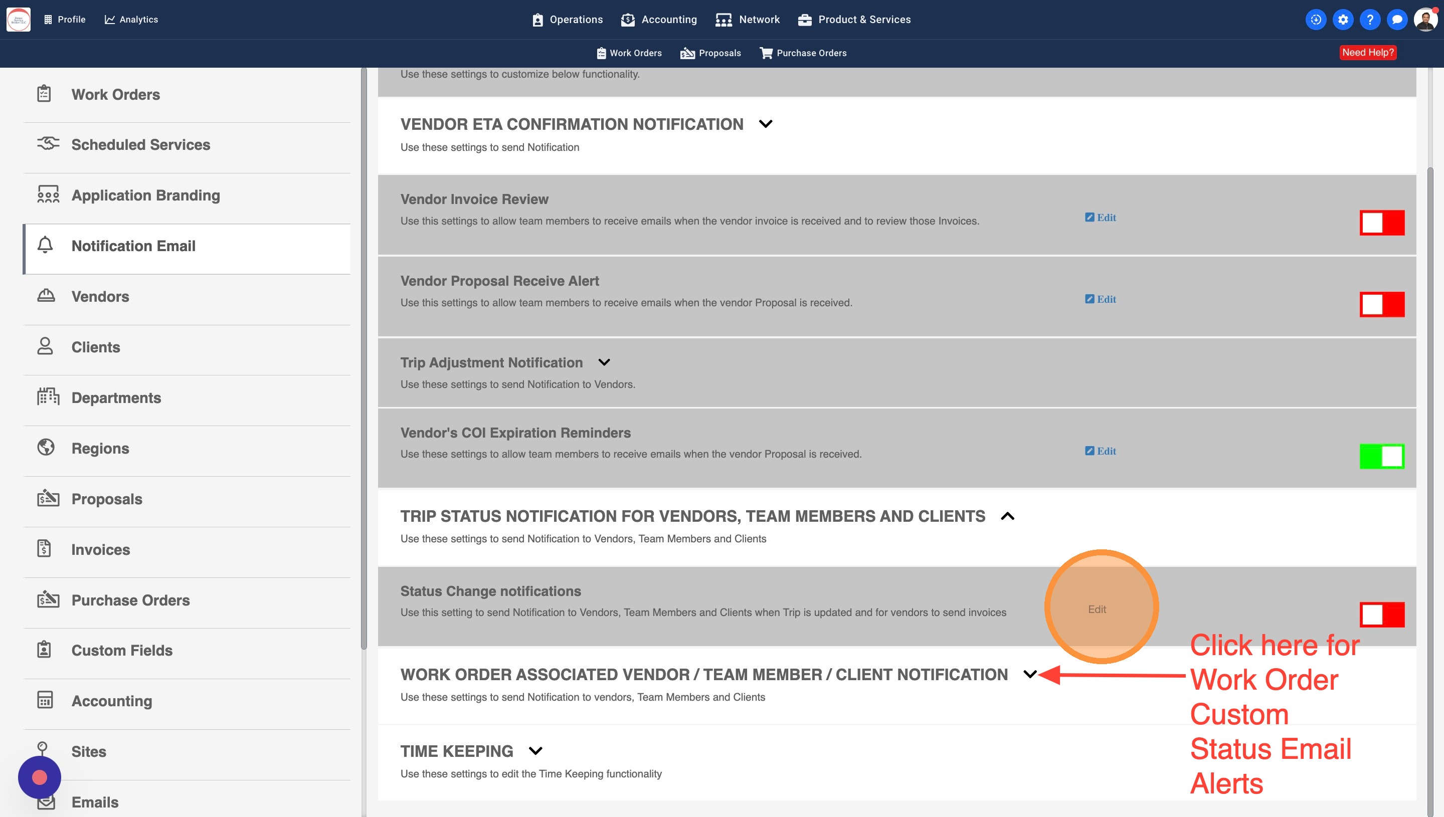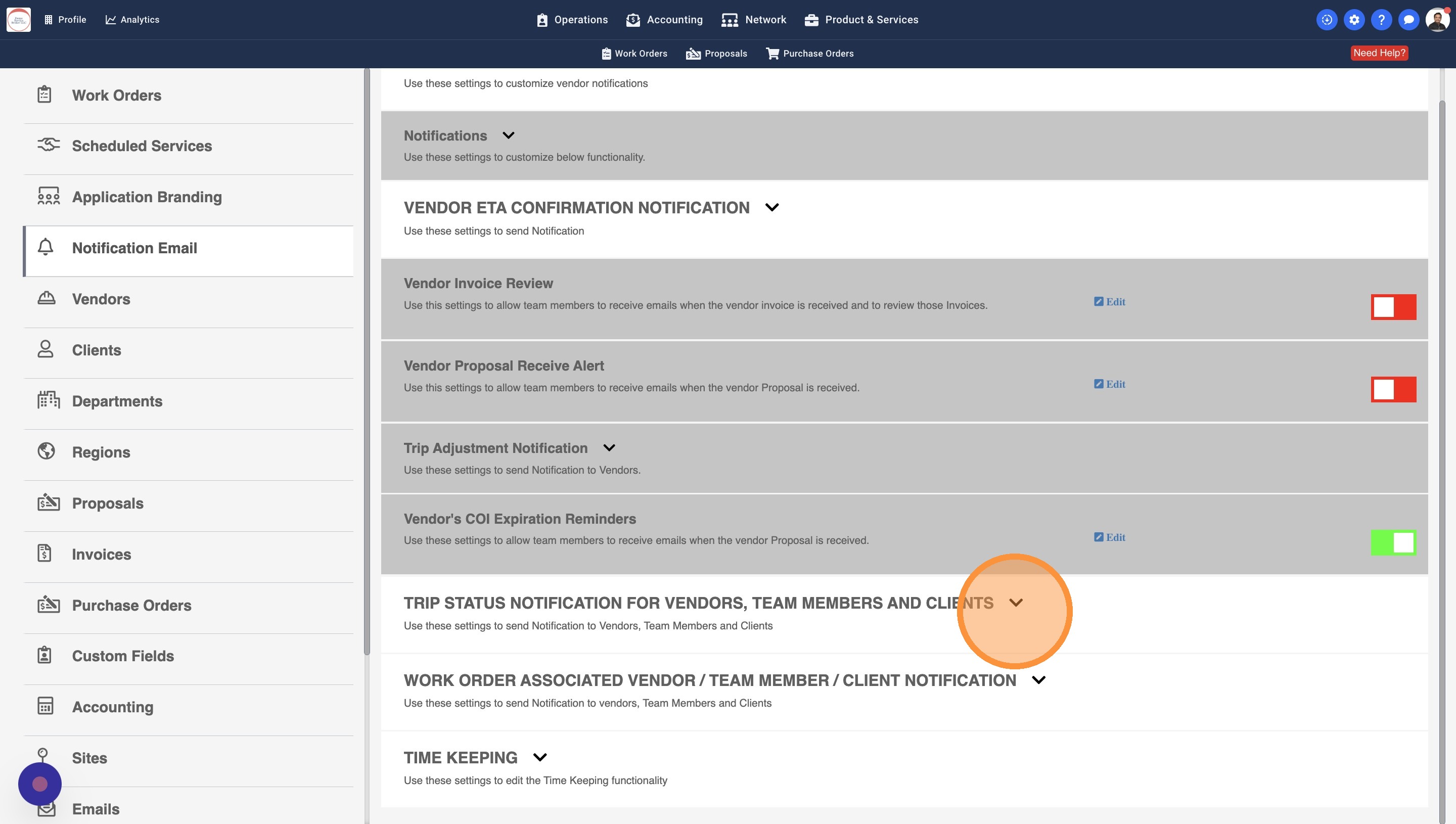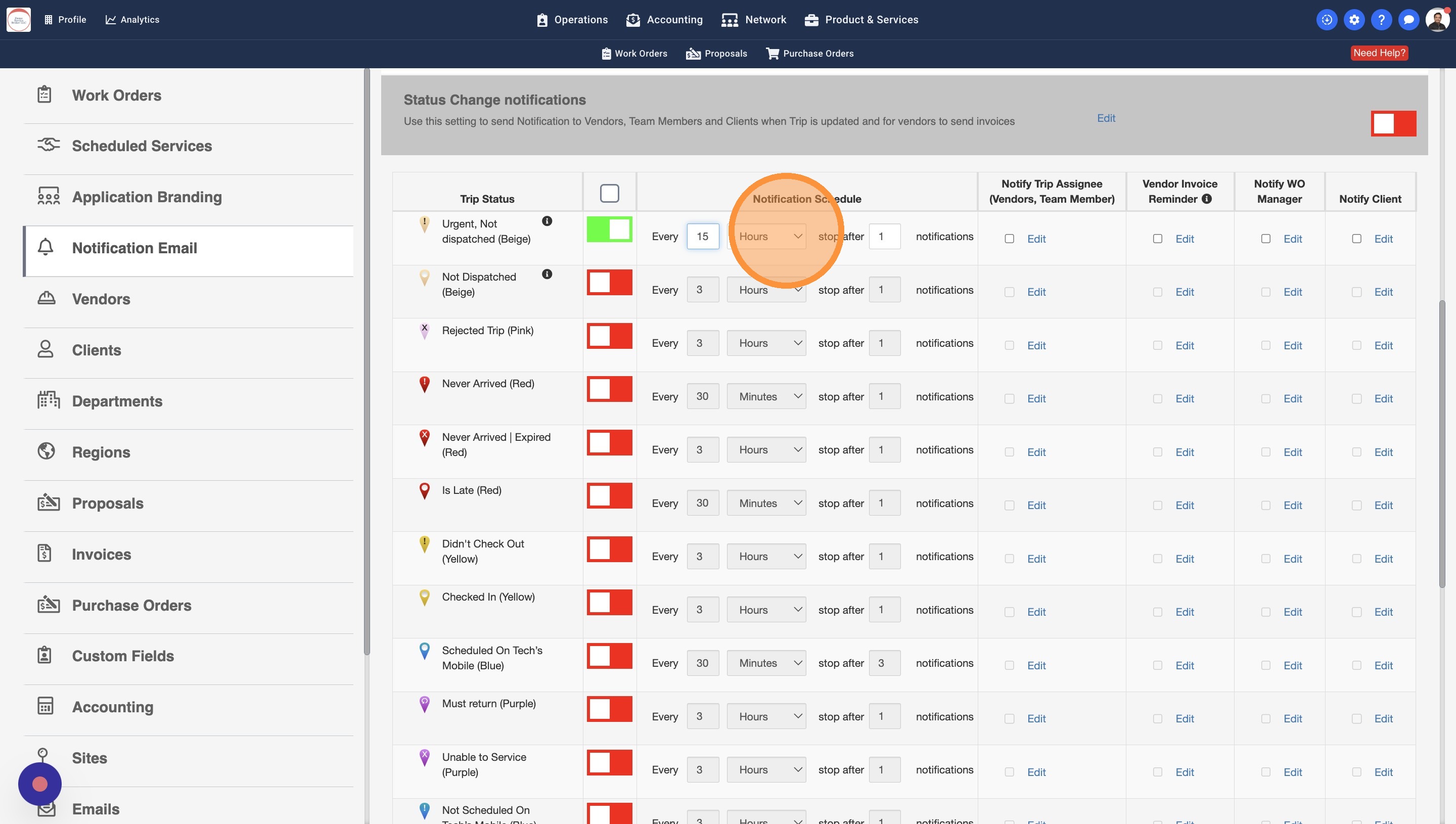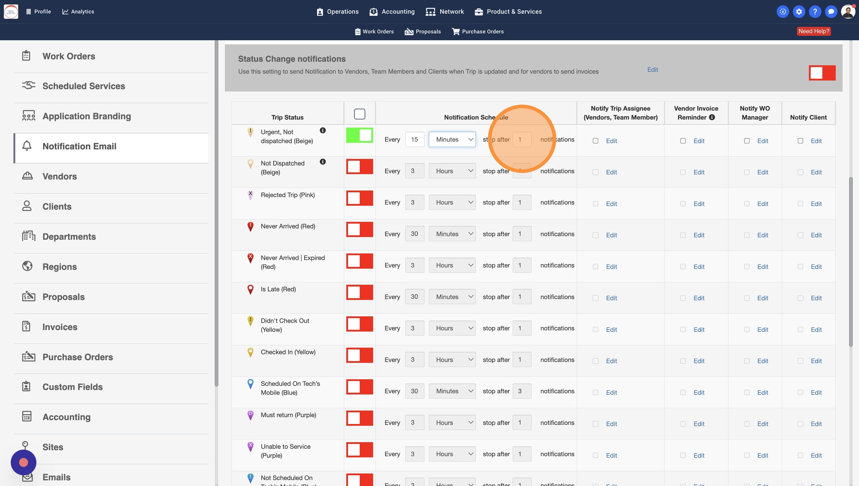 13. Some Work Orders may have a Work Order Manager assigned. You can turn this setting on to notify the WO Managers about the Trip Status