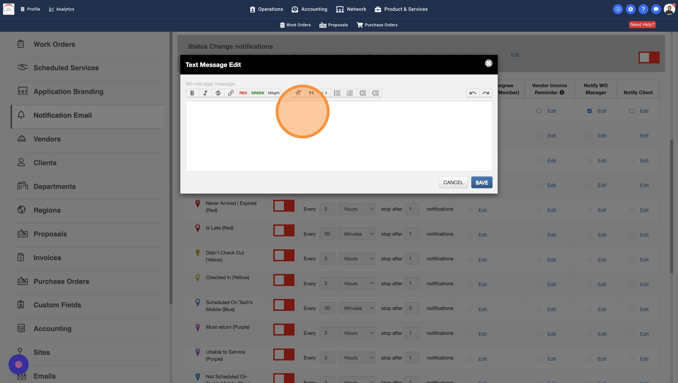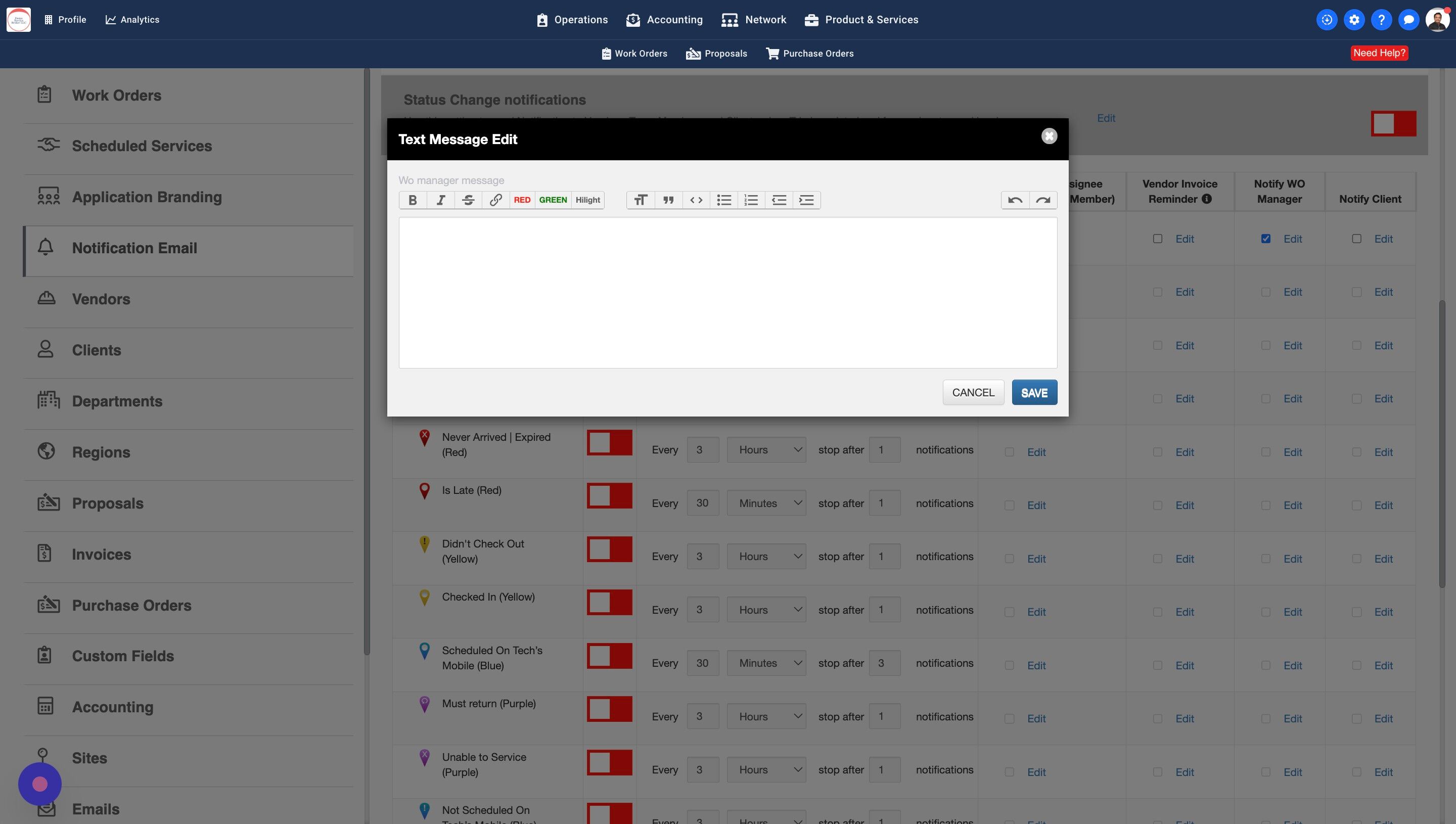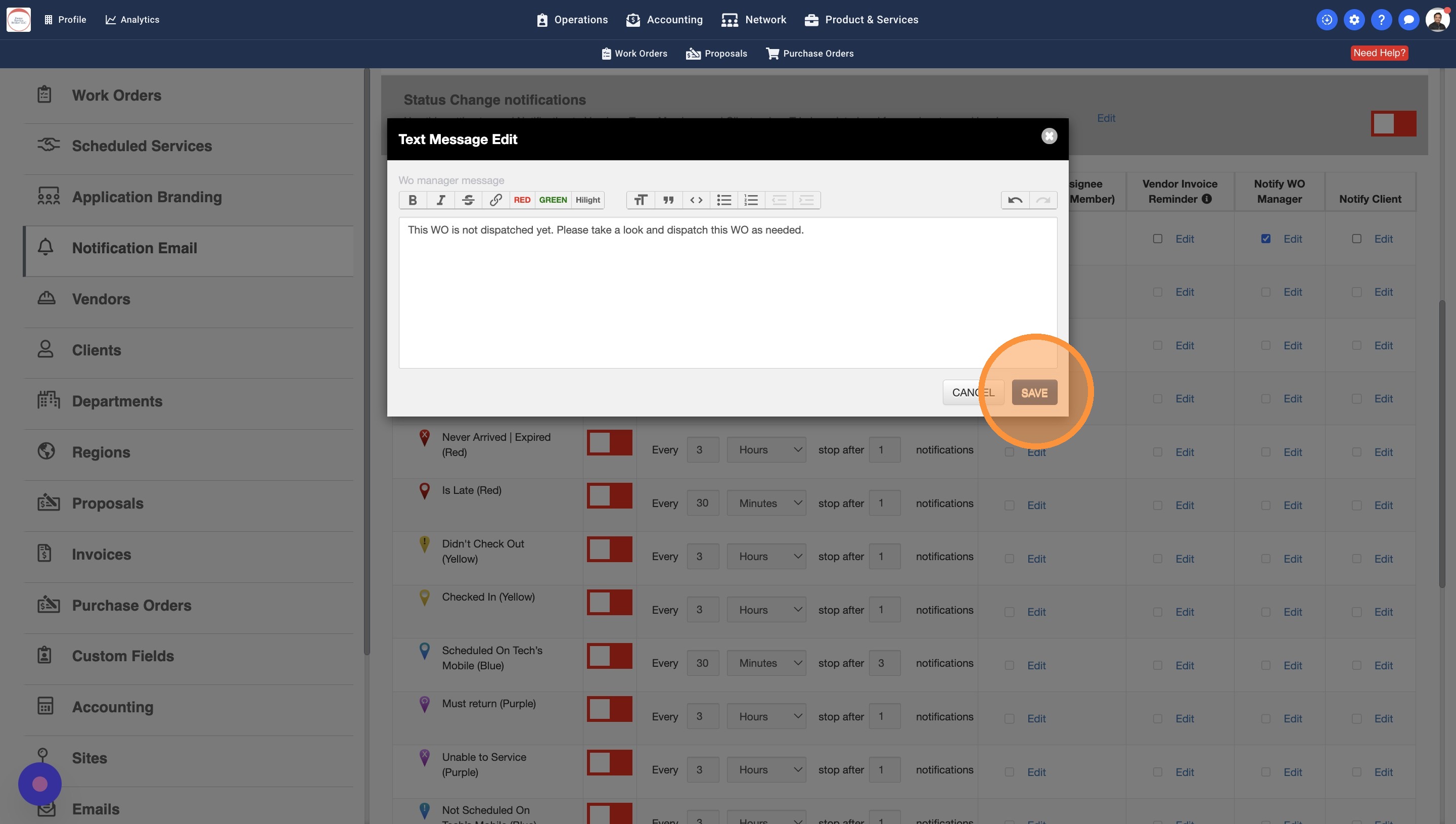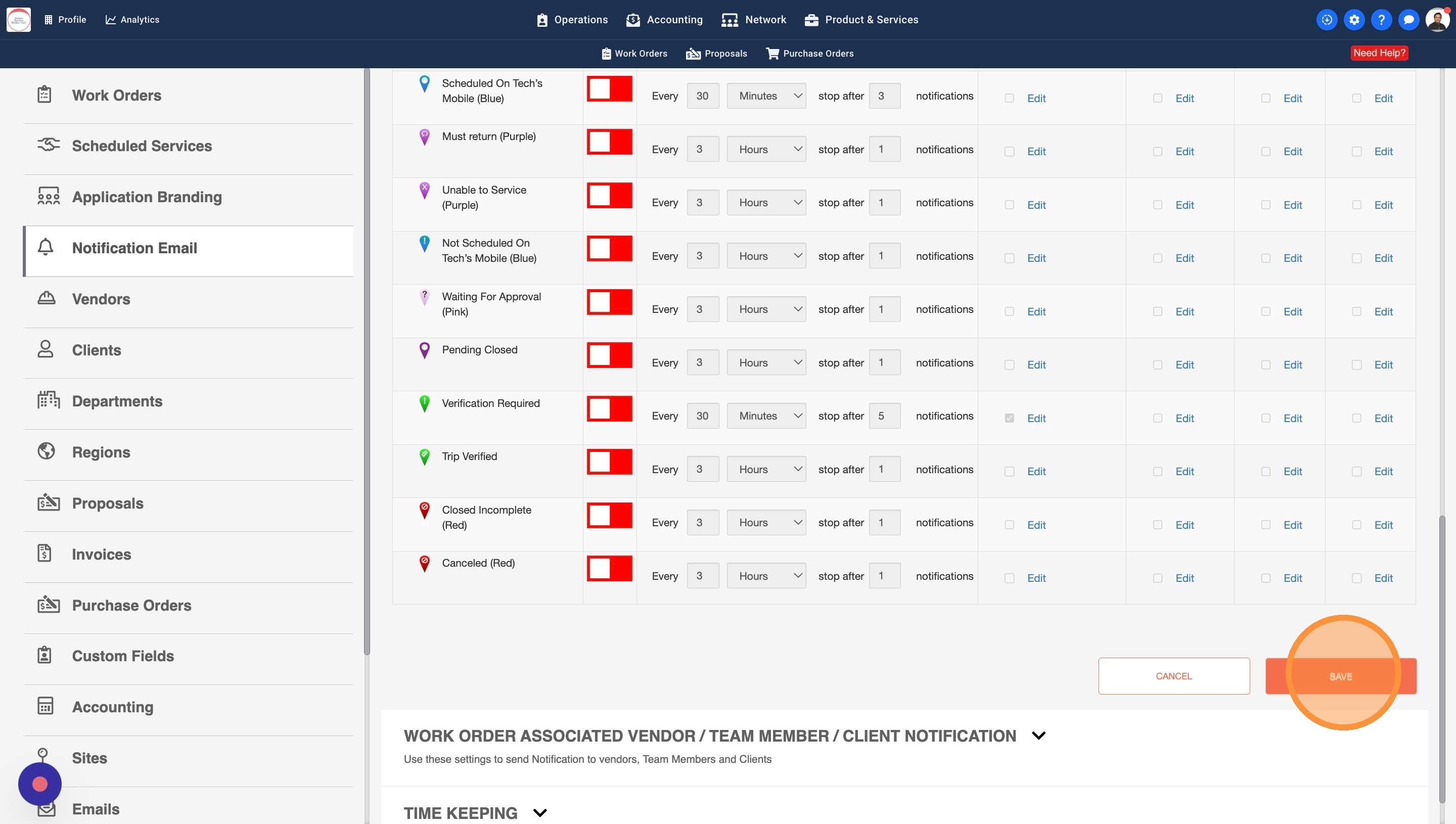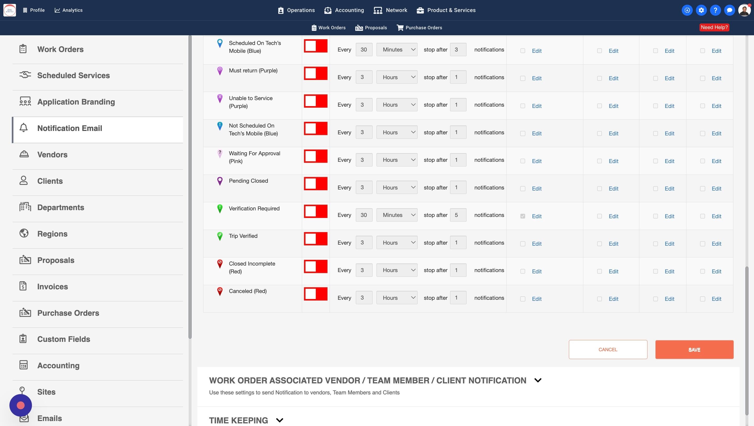 13. Some Work Orders may have a Work Order Manager assigned. You can turn this setting on to notify the WO Managers about the Trip Status