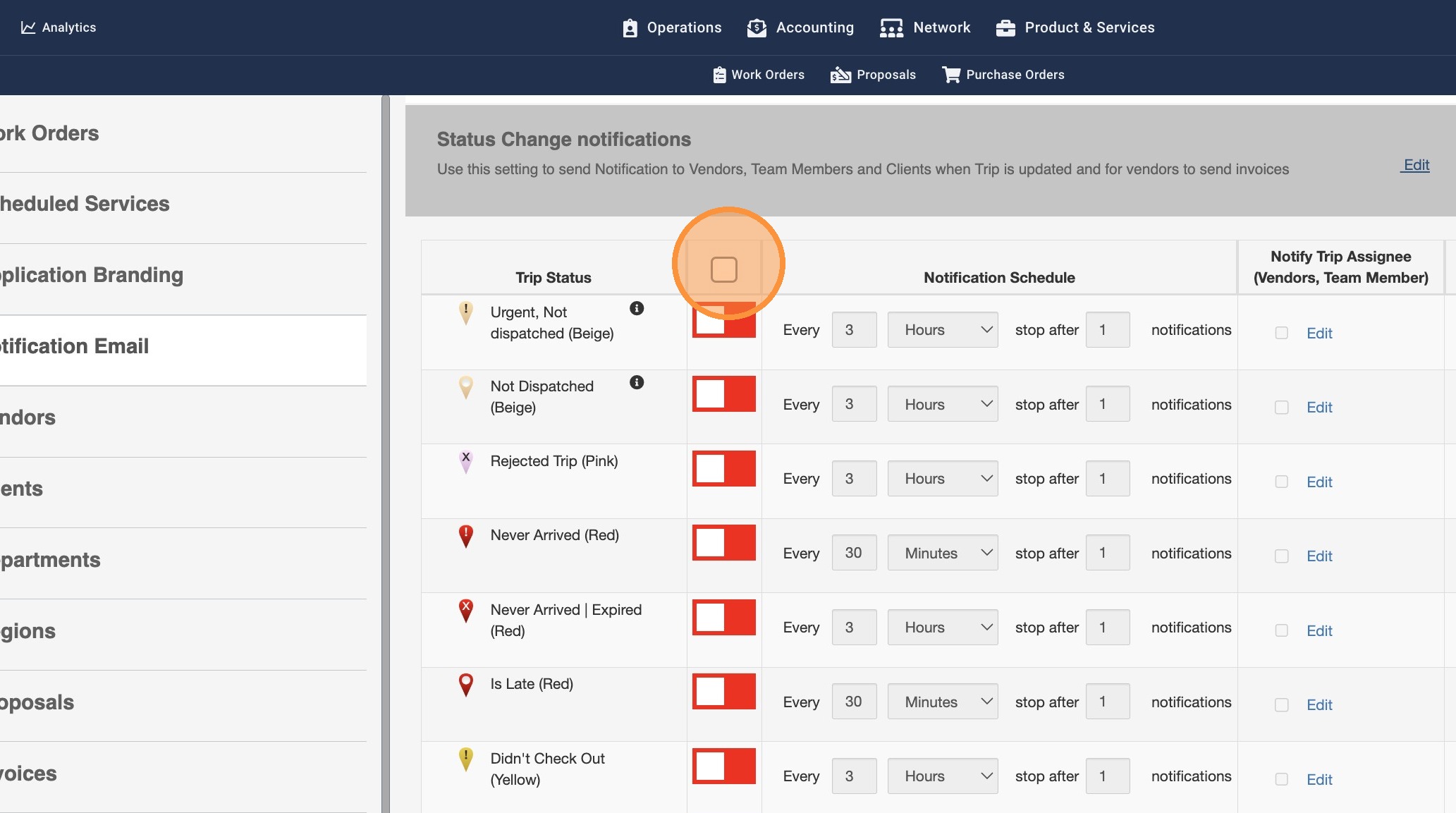 8. You can customize and turn on this setting for required Trip Status only. Enter a limit under "Notification Schedule"