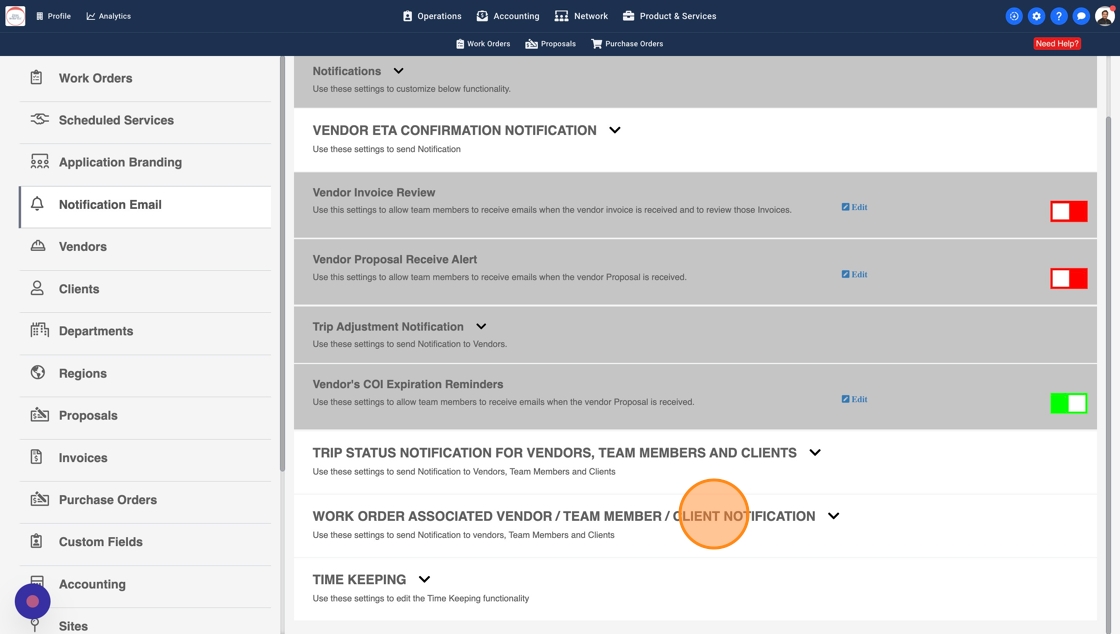 4. Expand "WORK ORDER ASSOCIATED VENDOR / TEAM MEMBER / CLIENT NOTIFICATION"