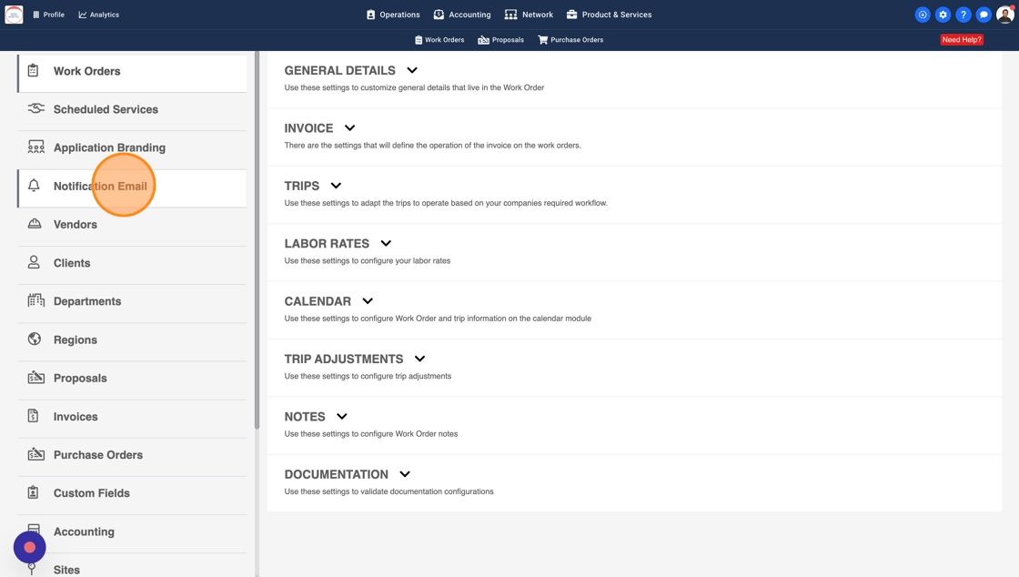 3. Select "Notification Email" from the left menu