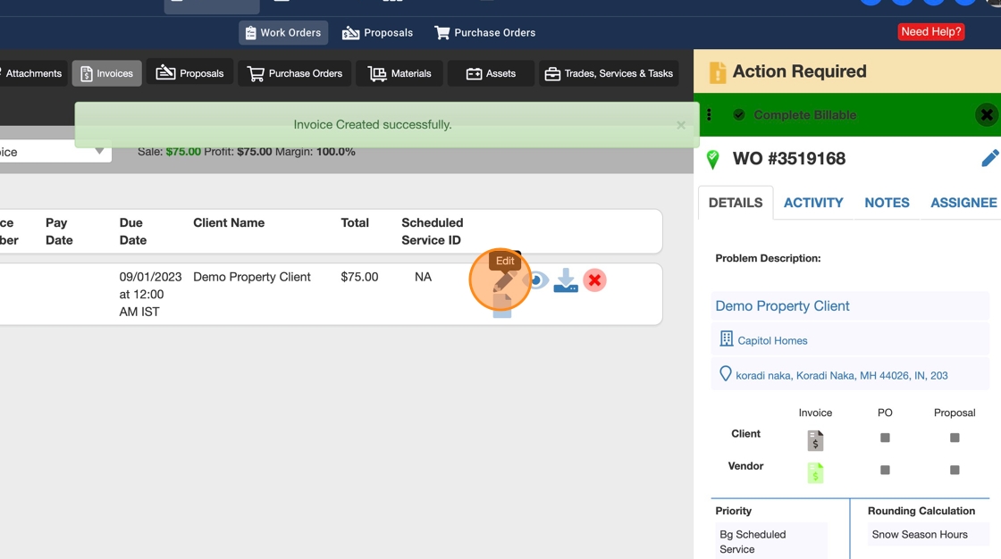 This guide provides step-by-step instructions on how to create a new Client Invoice from a Work Order. Following these steps will help streamline your invoicing process and ensure accurate and timely billing for your clients.