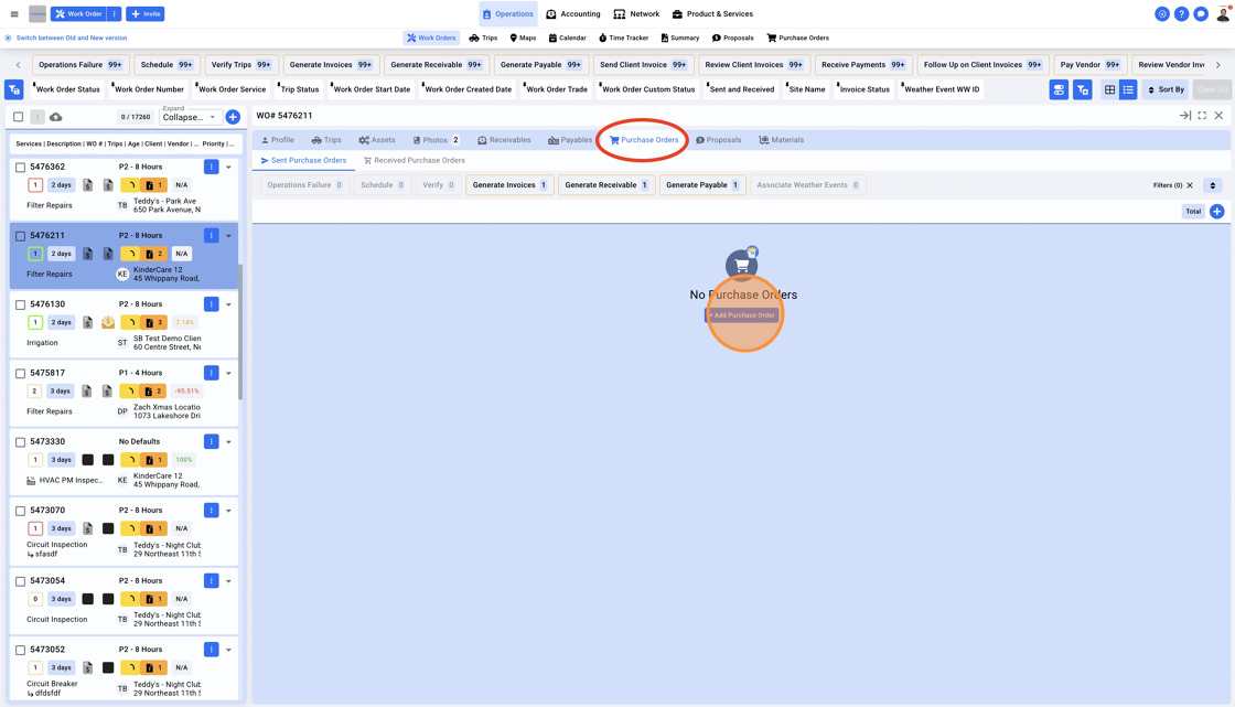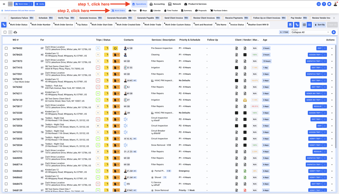 1. Click on "Operations" on the top center menu, and select "Work Orders" from the sub-menu. Click on the Work Order number to go to the Work Order details panel