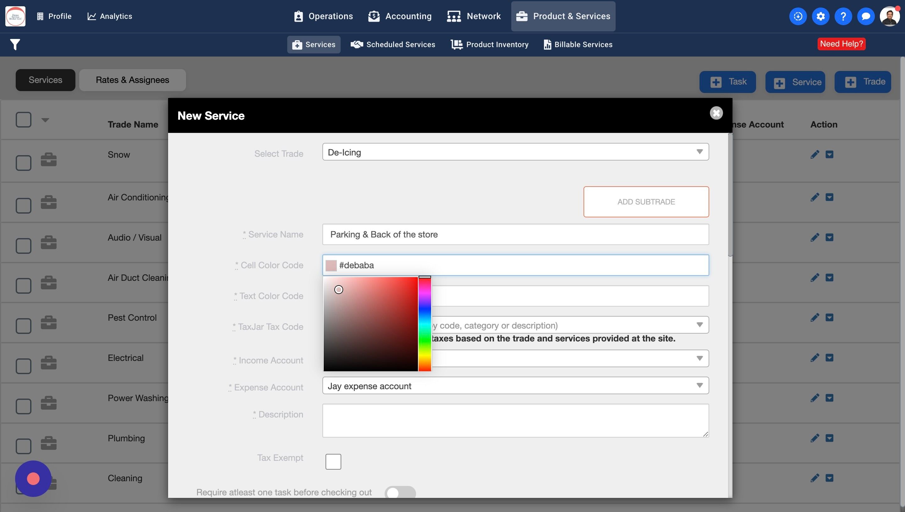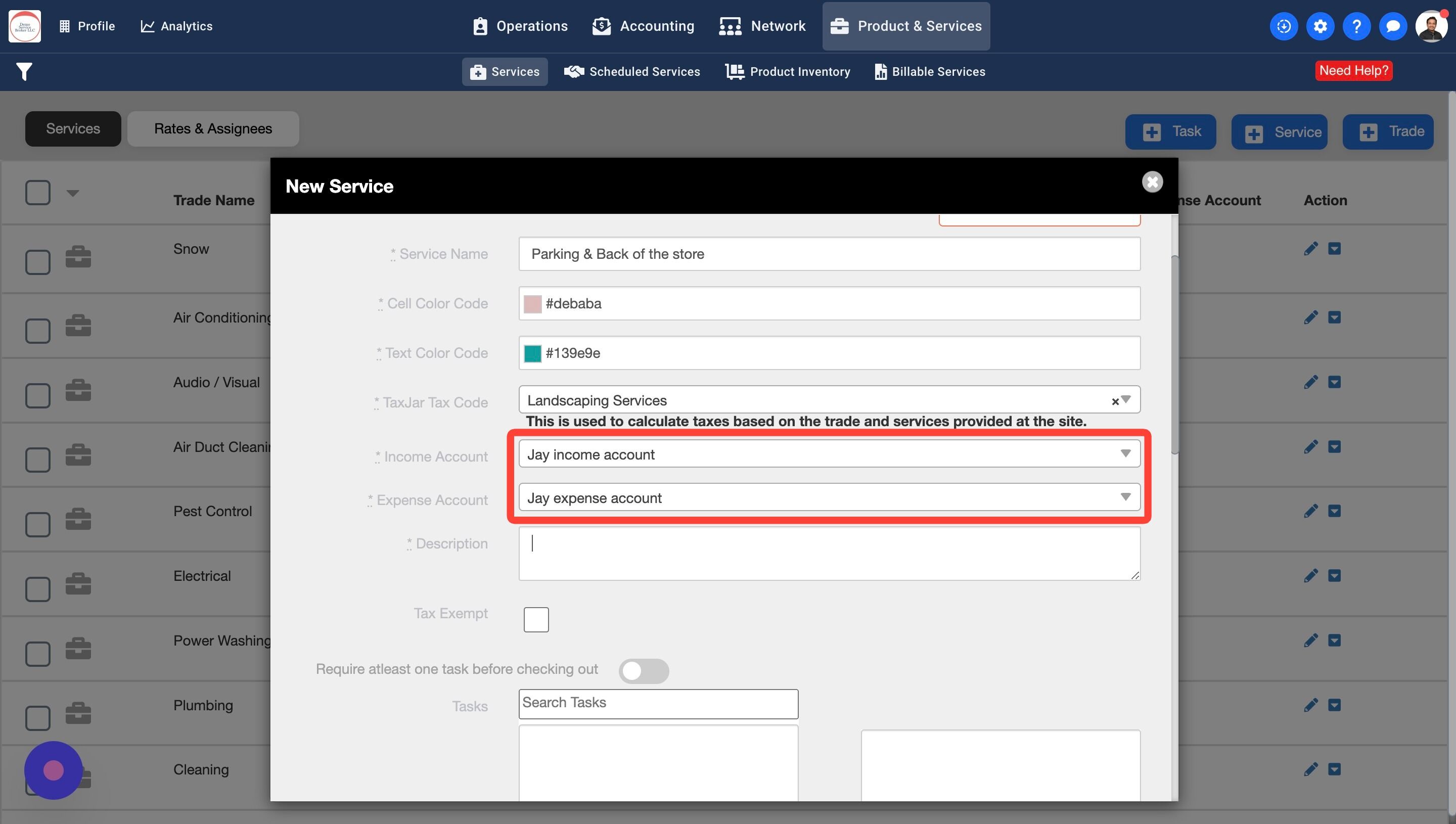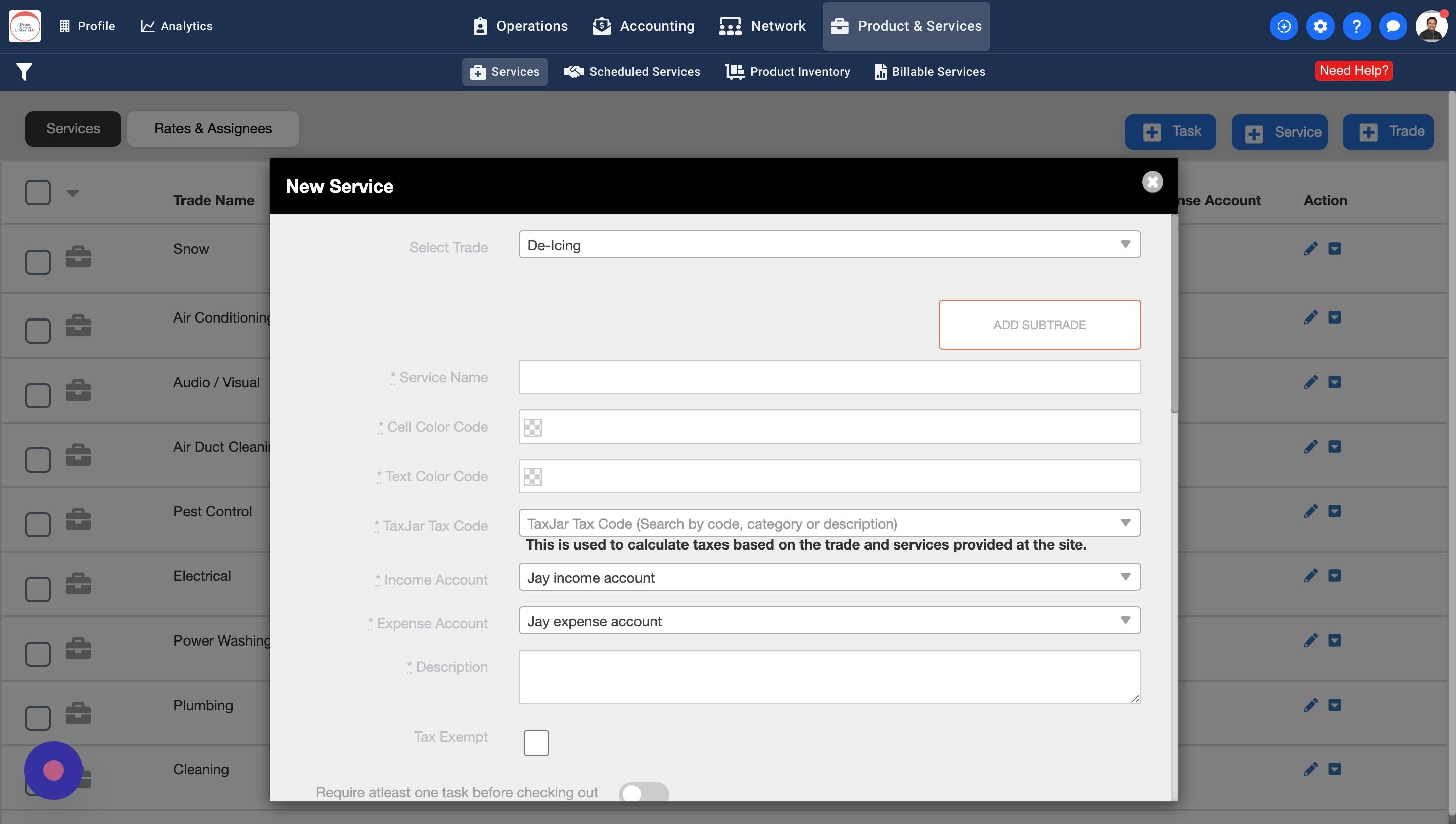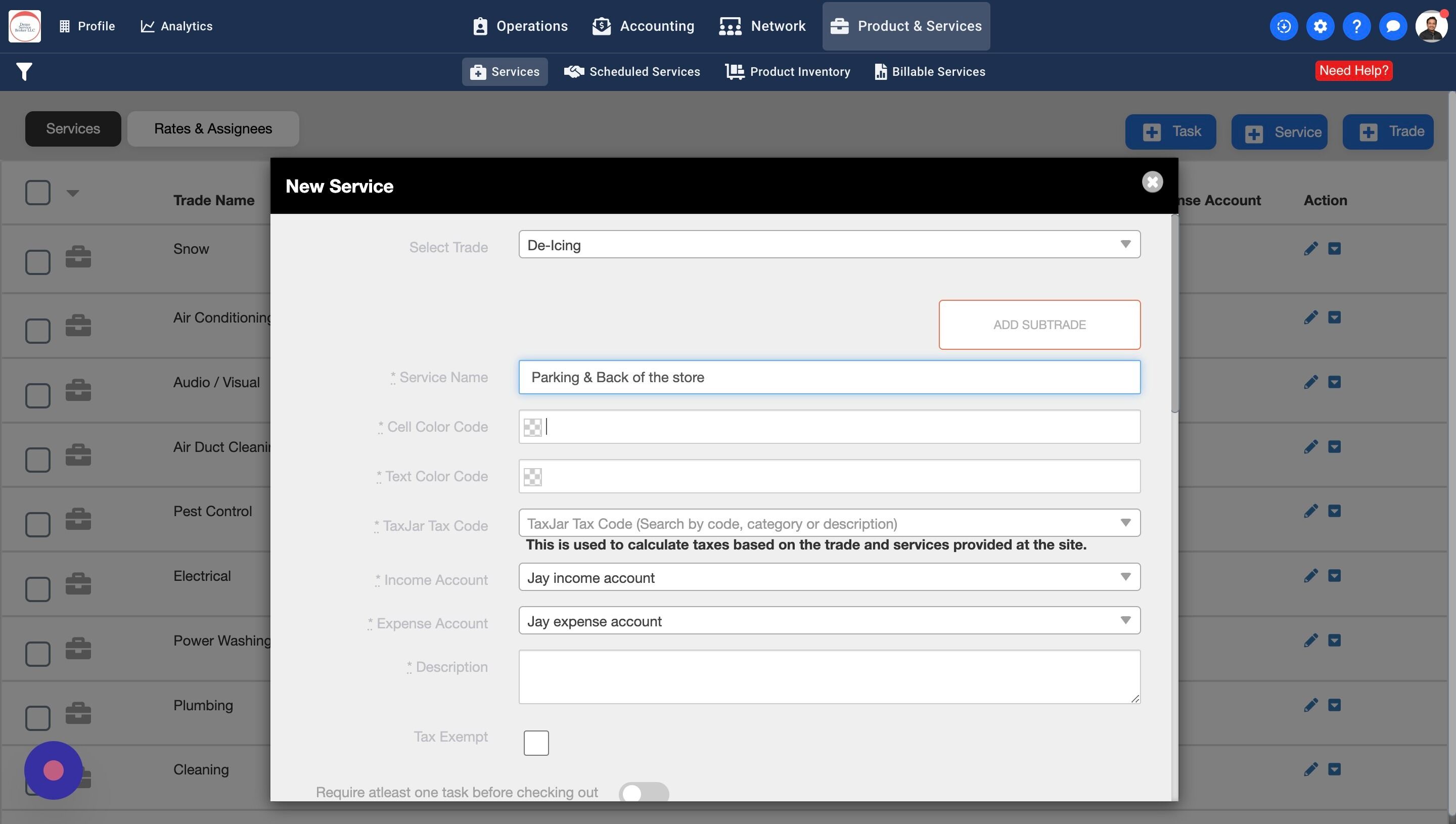 16. You should be able to see your newly added Service under the Trade. To view it, click on the Trade row and you should see a dropdown with all the Services under the Trade