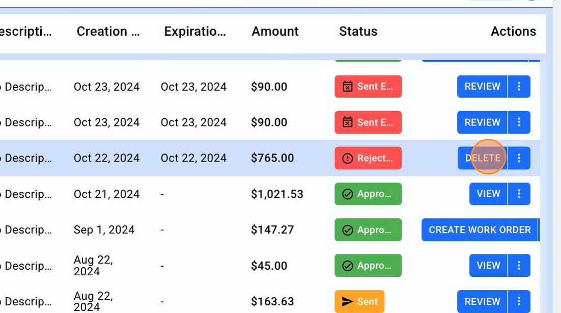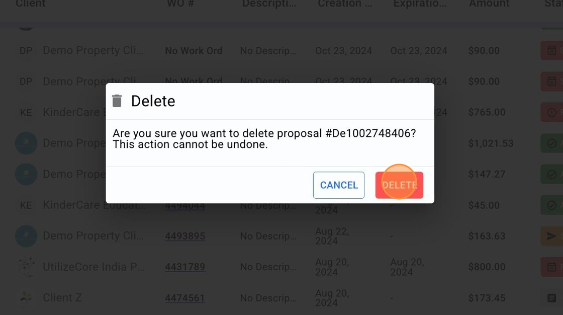 Note: The delete button will only be available when a Proposal is rejected and this action cannot be undone.