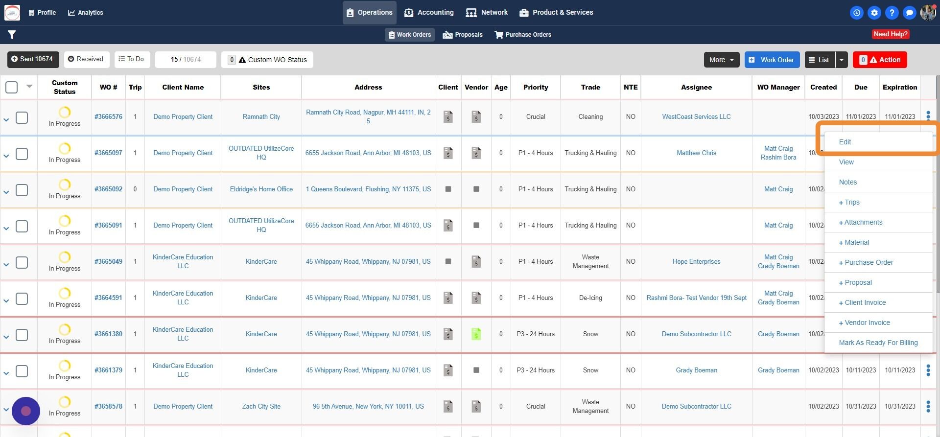 First Method - Click on the 3 dots on the right hand side of the Work Order