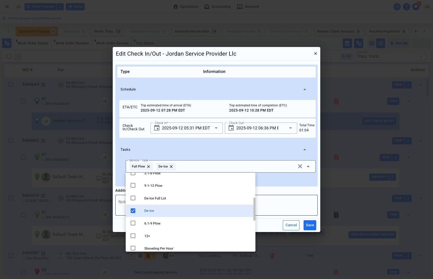 6. From the Edit Check In/Out window, adjust the Tasks performed as necessary.