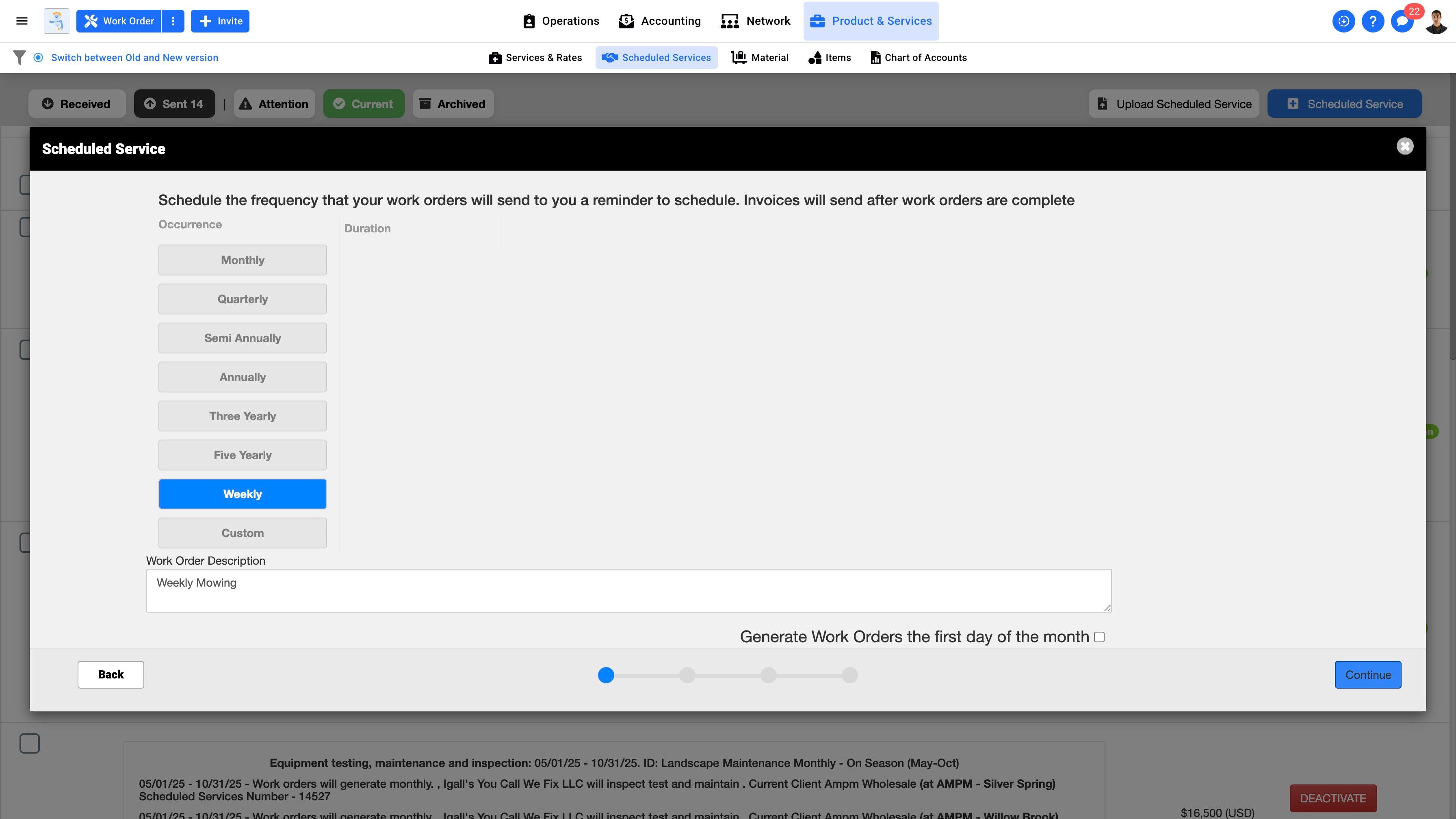 16. Click "Continue" once you are done with the Work Order frequency set up.