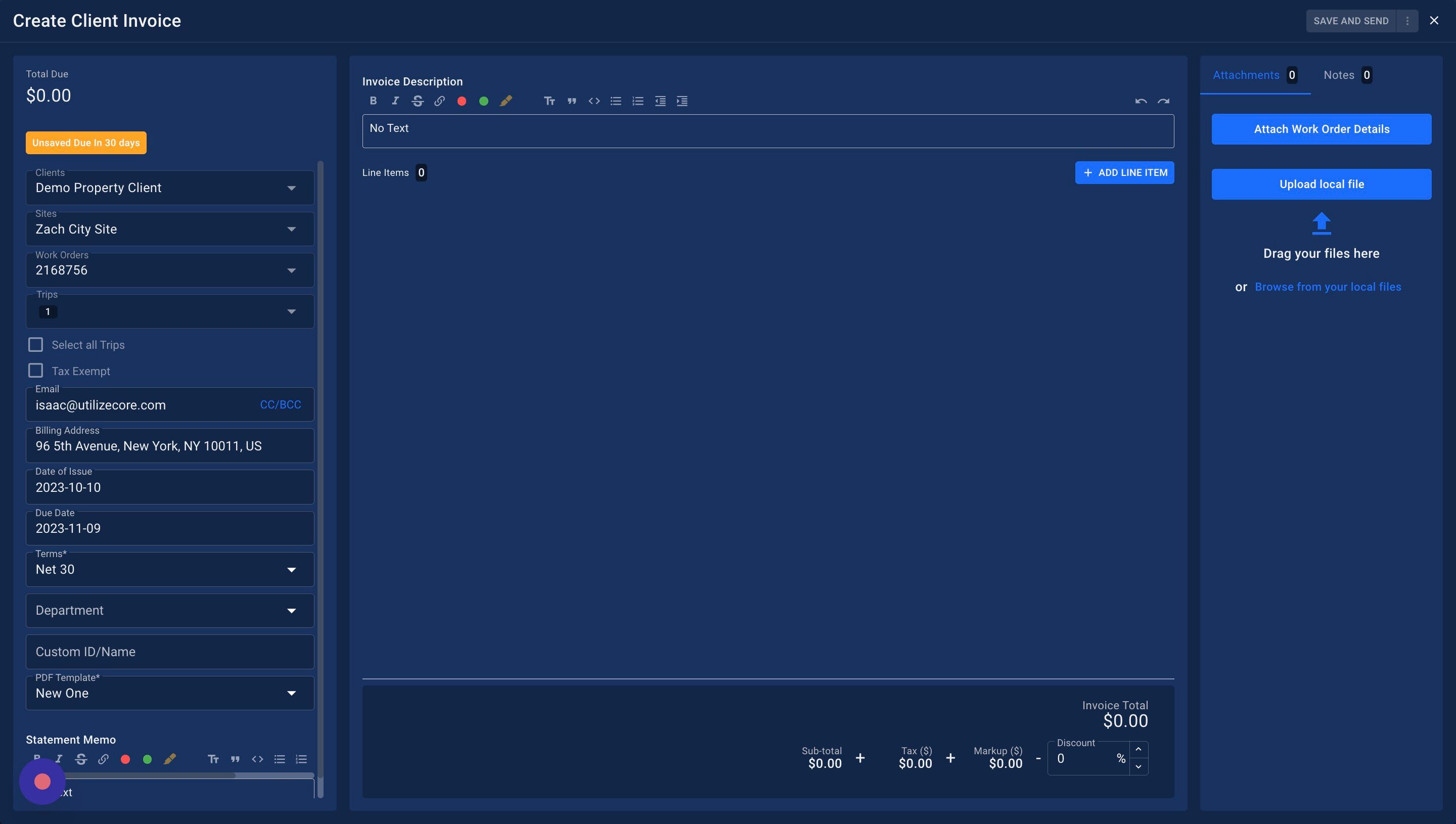 12. Click "SAVE AND SEND" to send the Invoice to your Client