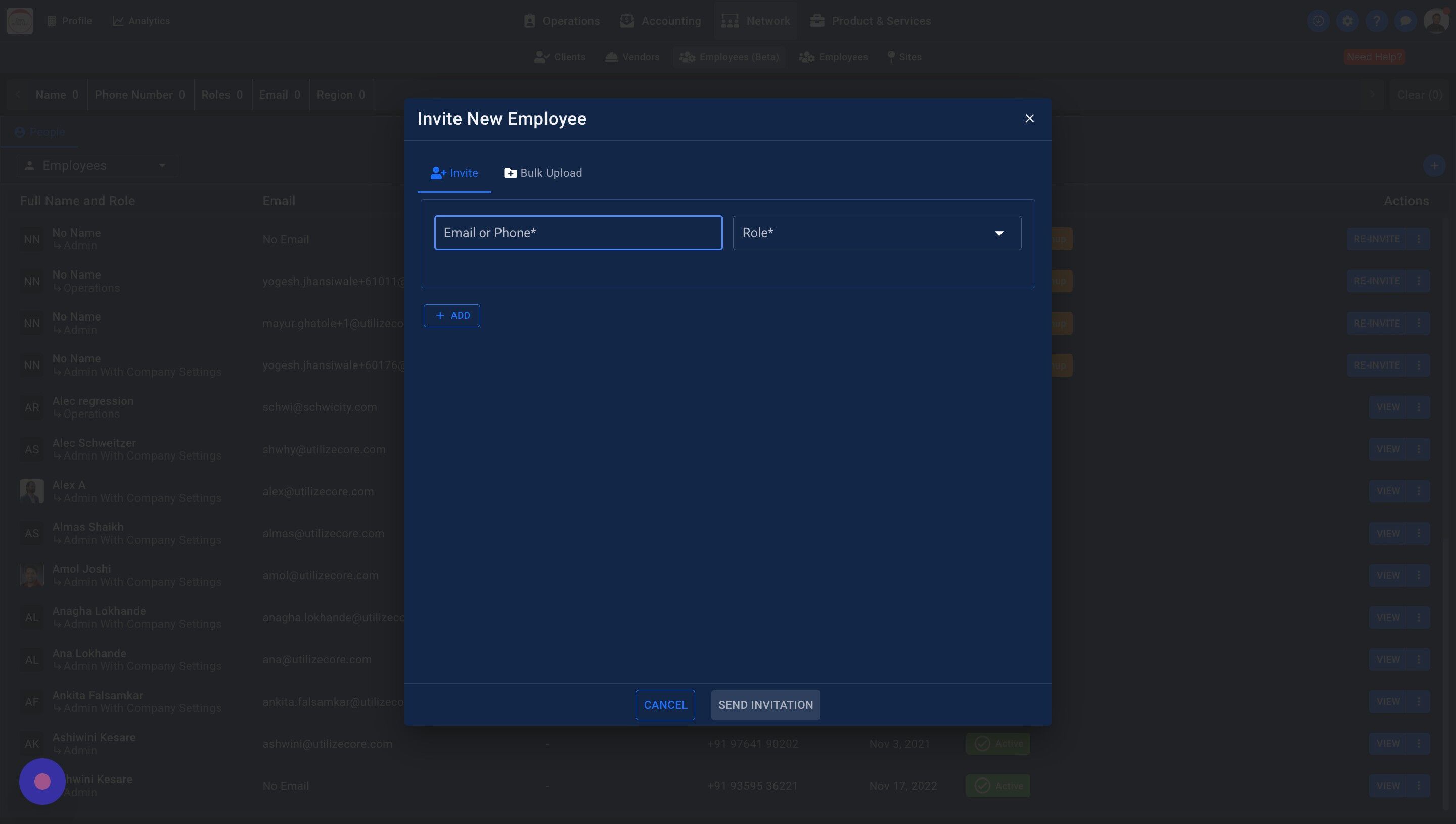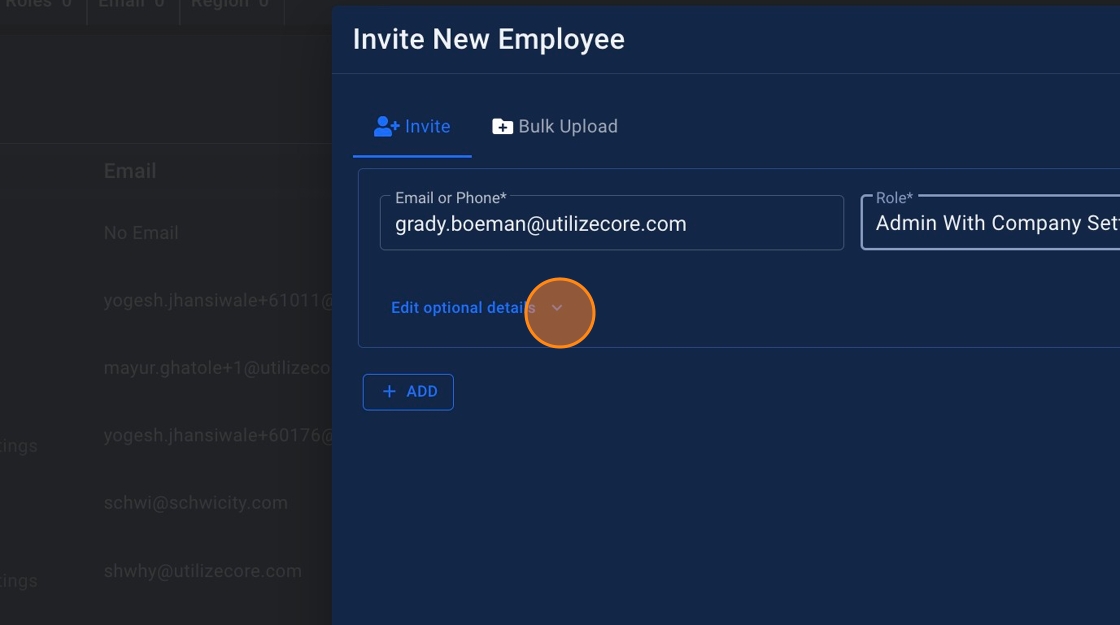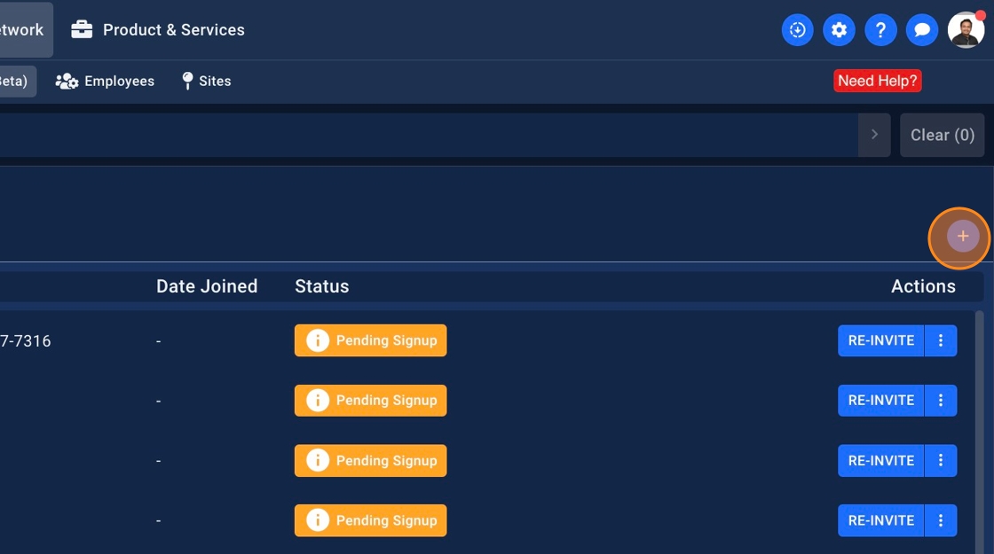 Note: You can invite new Employees via phone number too. They'd receive a text message with a link to sign-up to your portal