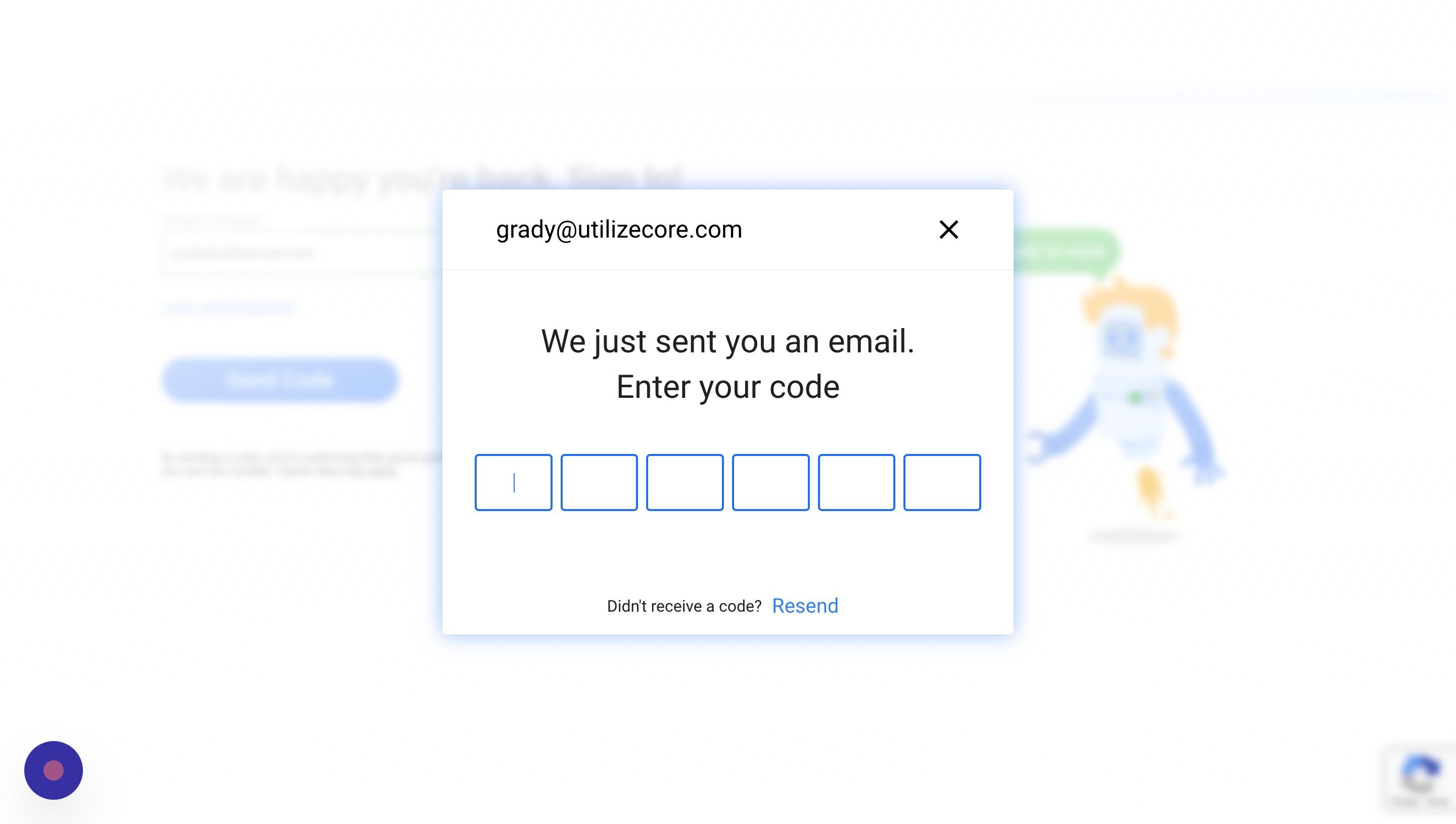 2. Enter your "Email or Phone*. We've entered an email address and the code was received to the email we entered below. If you enter a phone number you'll receive a code via text on your phone number