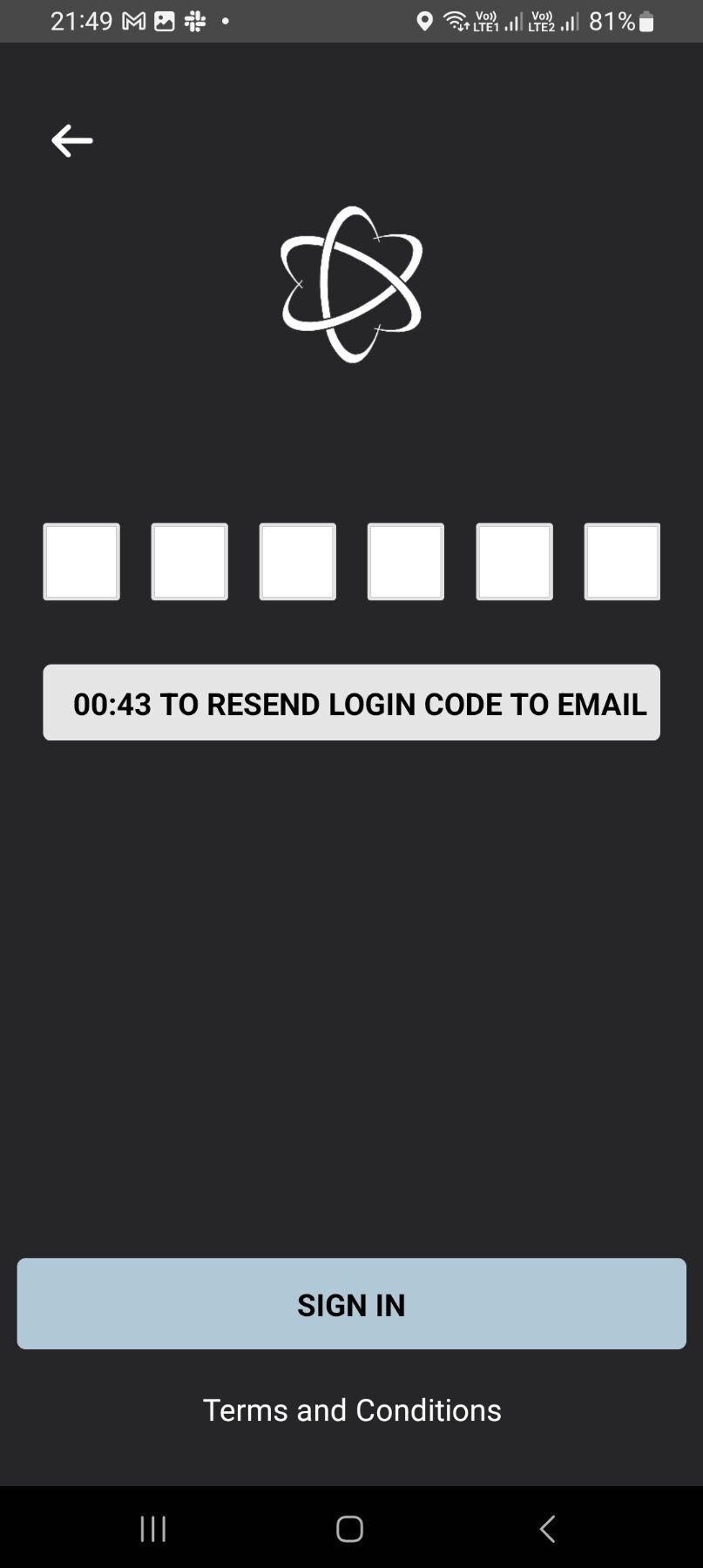 5. Go back to the app and enter the 6 digit code