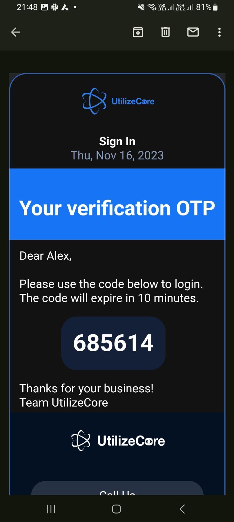 How To Login via OTP in the UtilizeCore Mobile App
