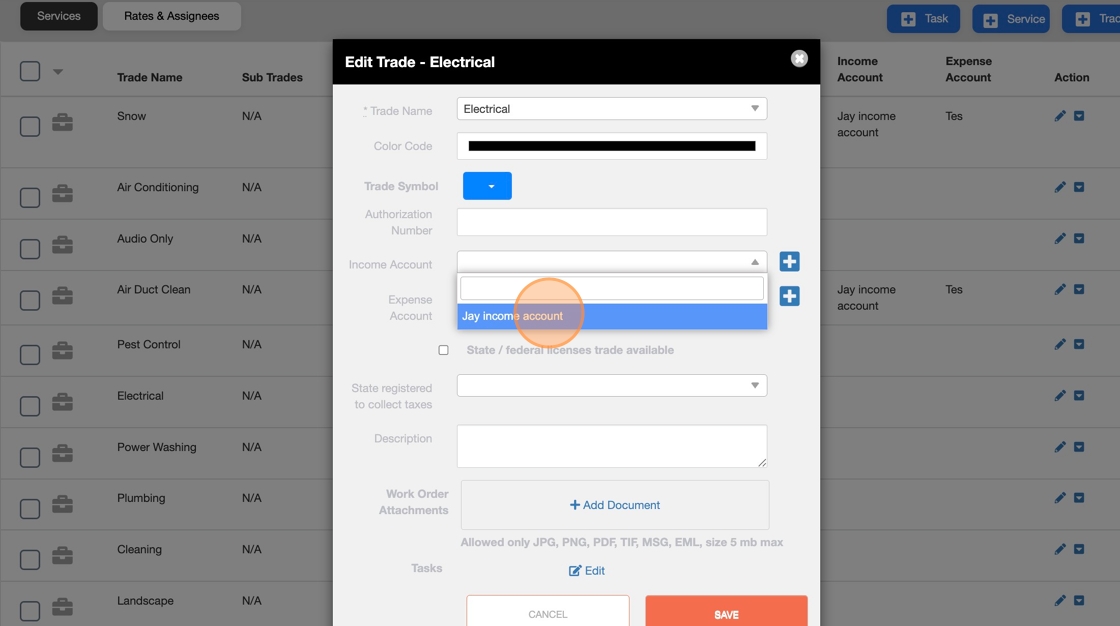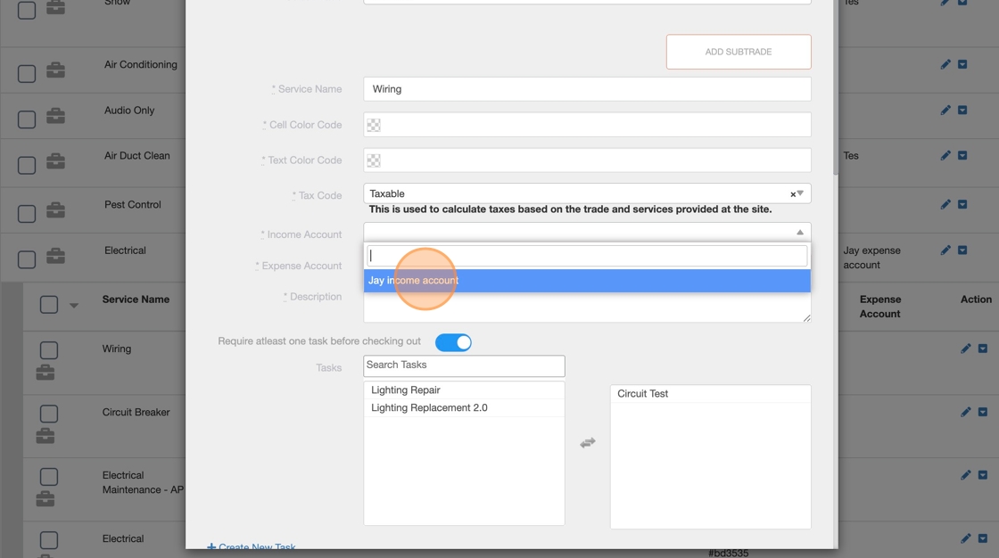 Learn how to set the default Income Account and Expense Account for a Trade or Service.