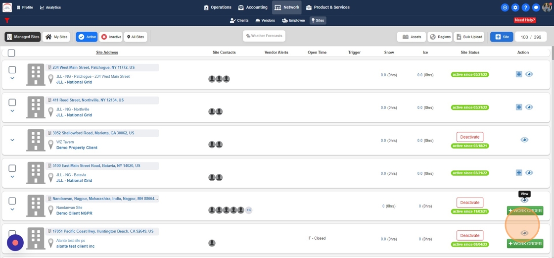 3. Click on the "Eye" Icon for the site that you want to change the Client for