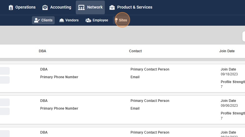 2. Click "Sites"