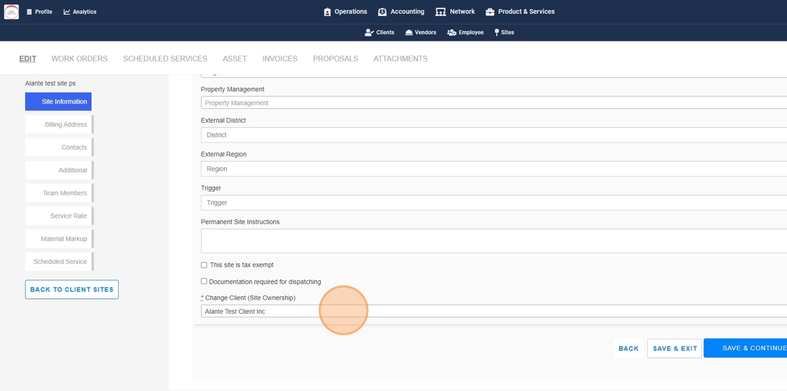 Click on "Change Client (Site Ownership)" section and select the new Client