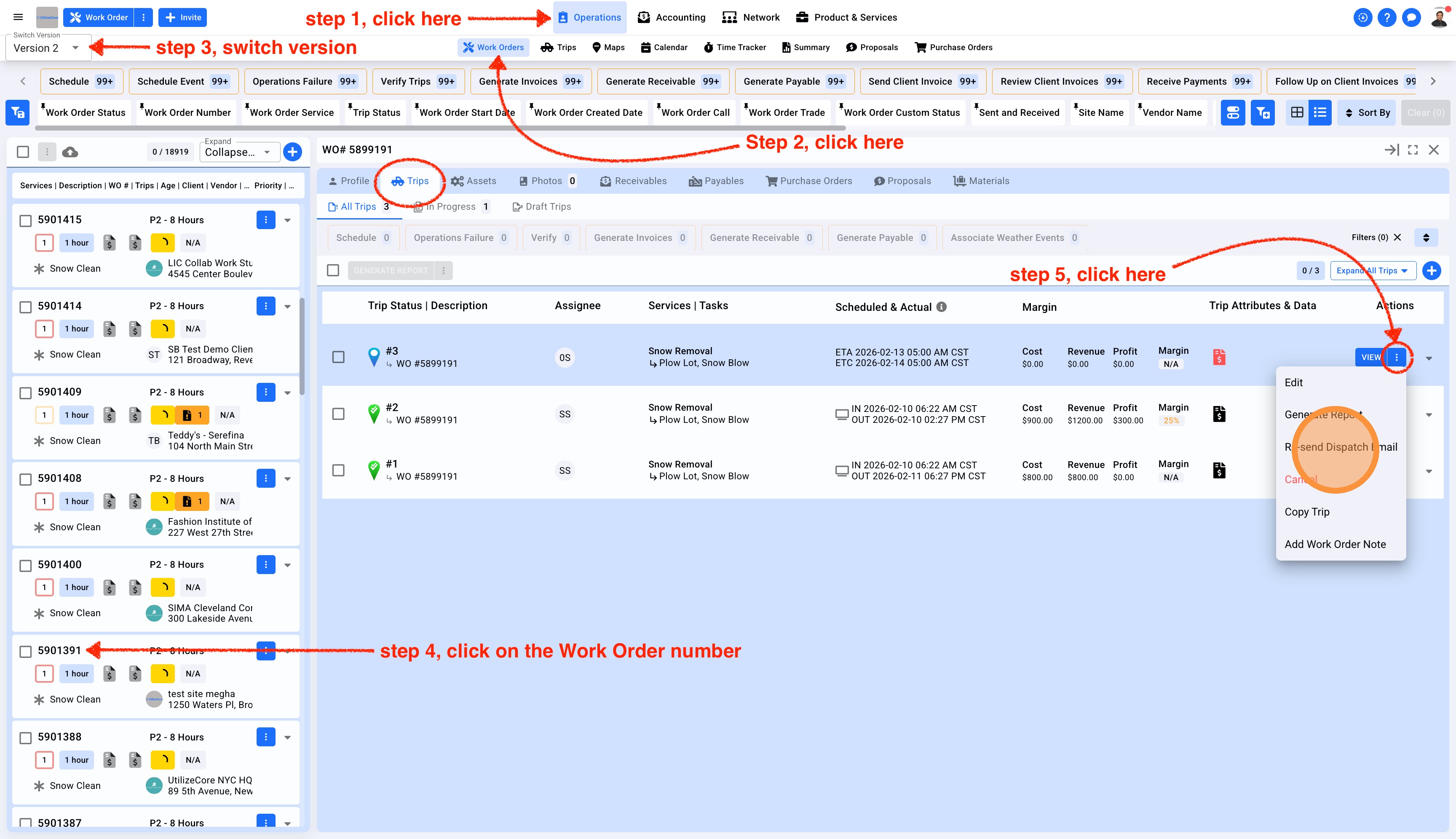 1. Click on Operations in the top center menu